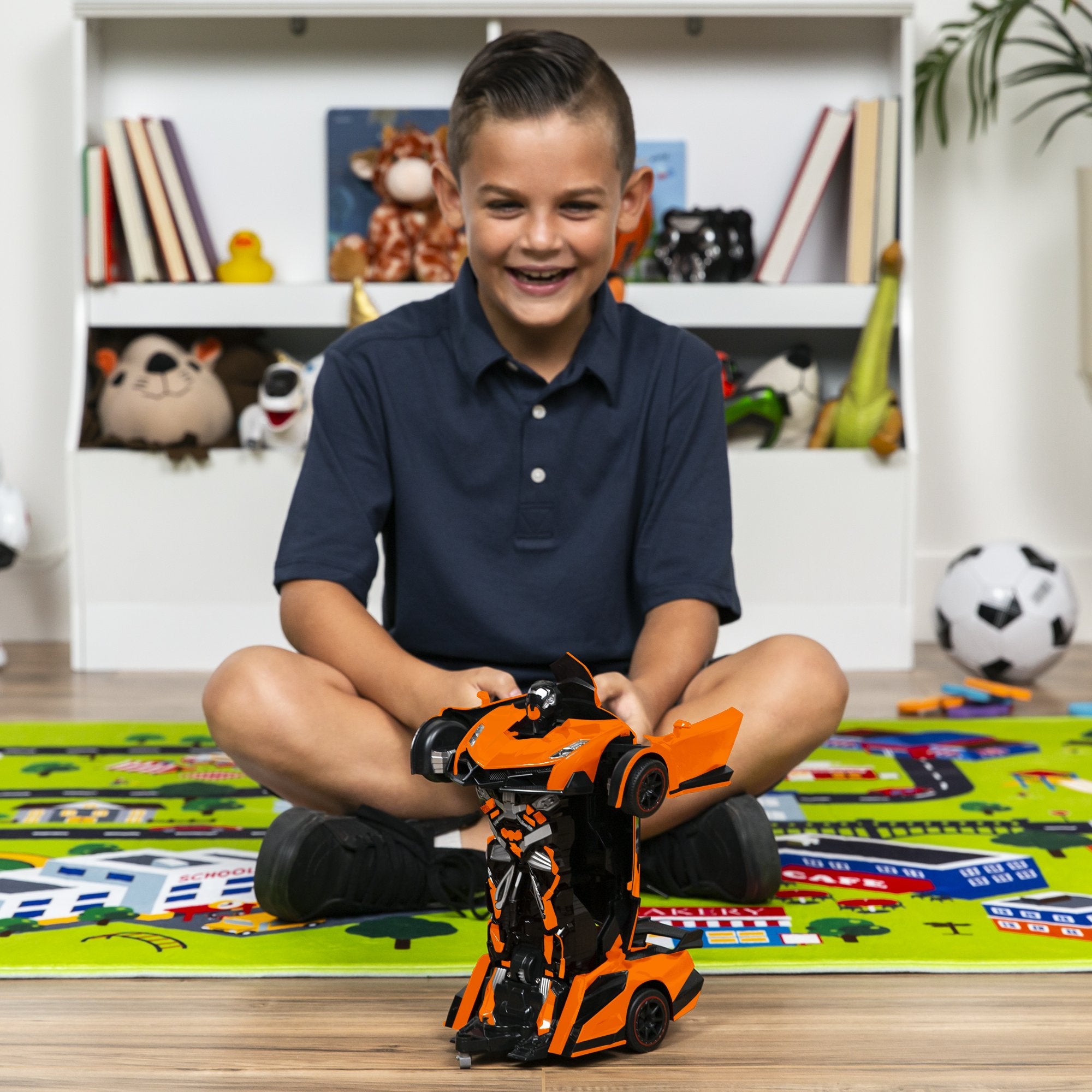 • ONE-BUTTON TRANSFORMATION: 2-in-1 RC toy gives kids the best of both worlds; simply press and hold a button to switch from a slick sports car to a powerful robot in just seconds!