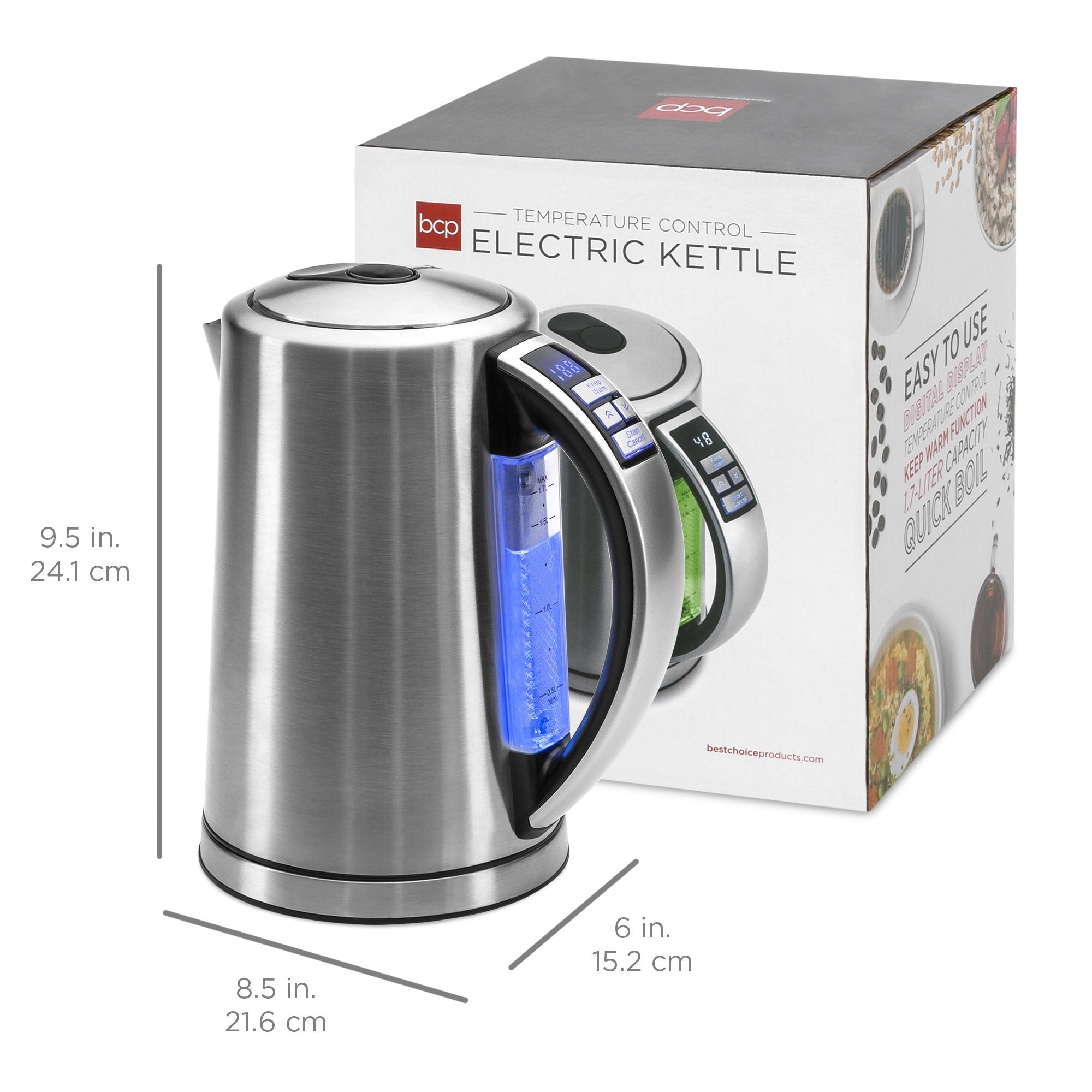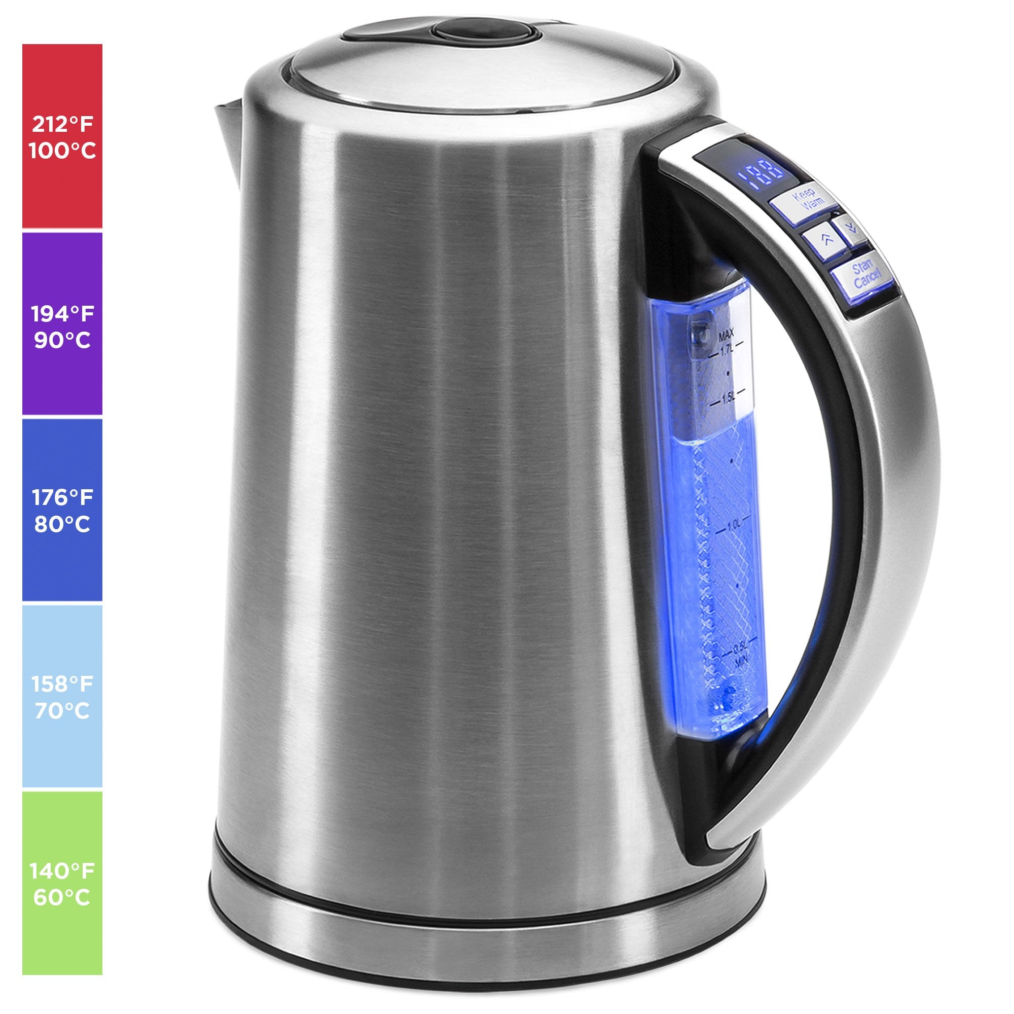 1.7L 1500W Stainless Steel Electric Kettle W/ LED Display, Auto Shutoff