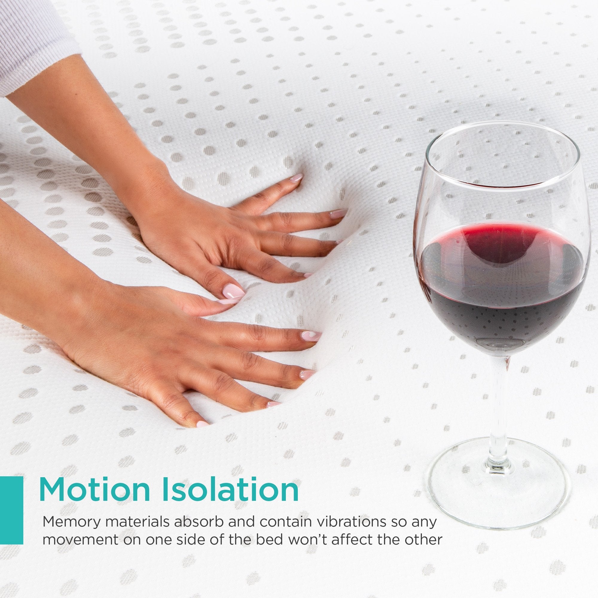DOUBLE-LAYERED MEMORY FOAM: A 2.5-inch, gel-infused memory foam layer rests over a high-density foam base, distributing body heat for a cool and comfortable sleep