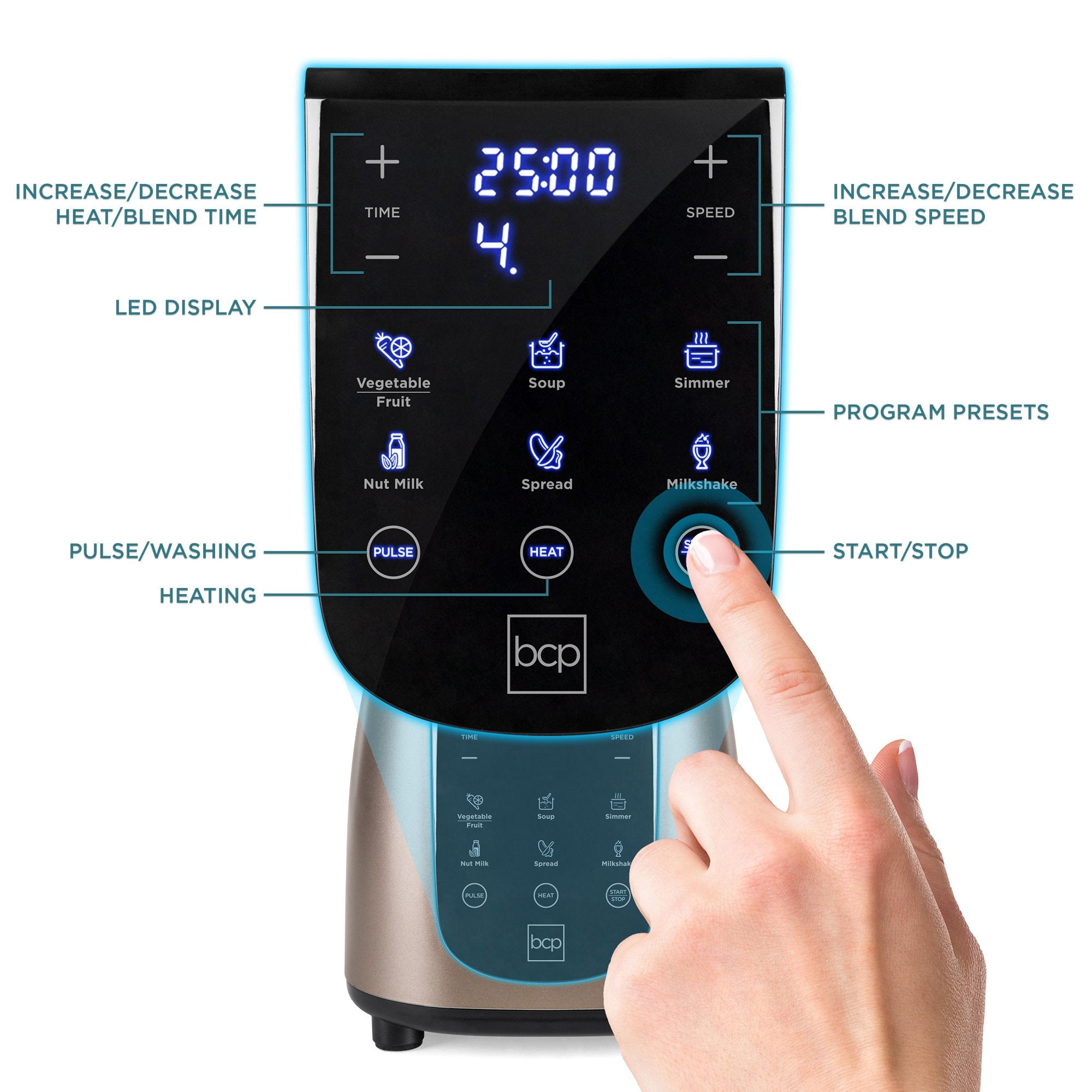 DIGITAL SCREEN W/ PRESETS: Equipped with a variety of presets for fast blending and mixing, this kitchen essential lets you easily make selections and control temperature, time, speed, and pulse functions with a digital screen and touch-buttons
