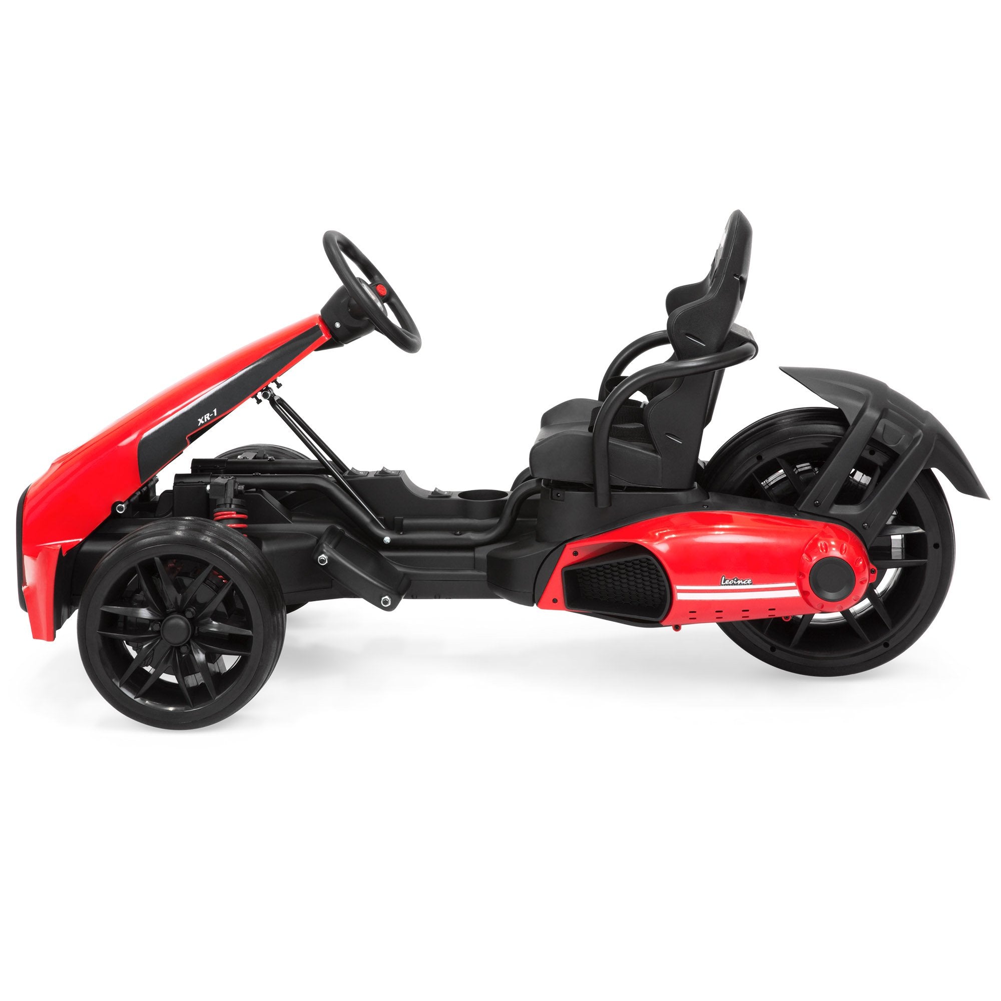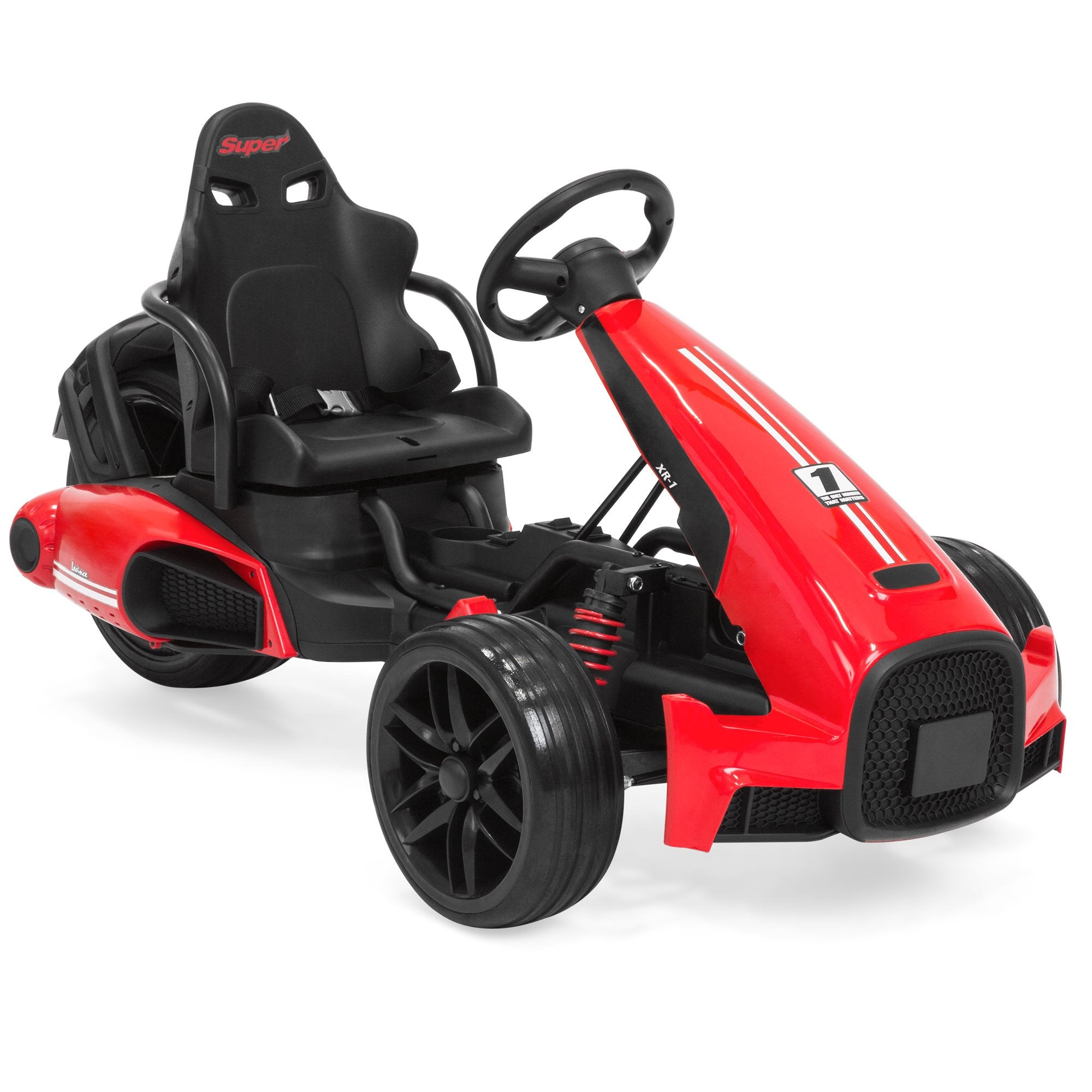 Complete with spring suspension system for a smooth ride, 3 racing wheels, and a sleek design for ultimate fun