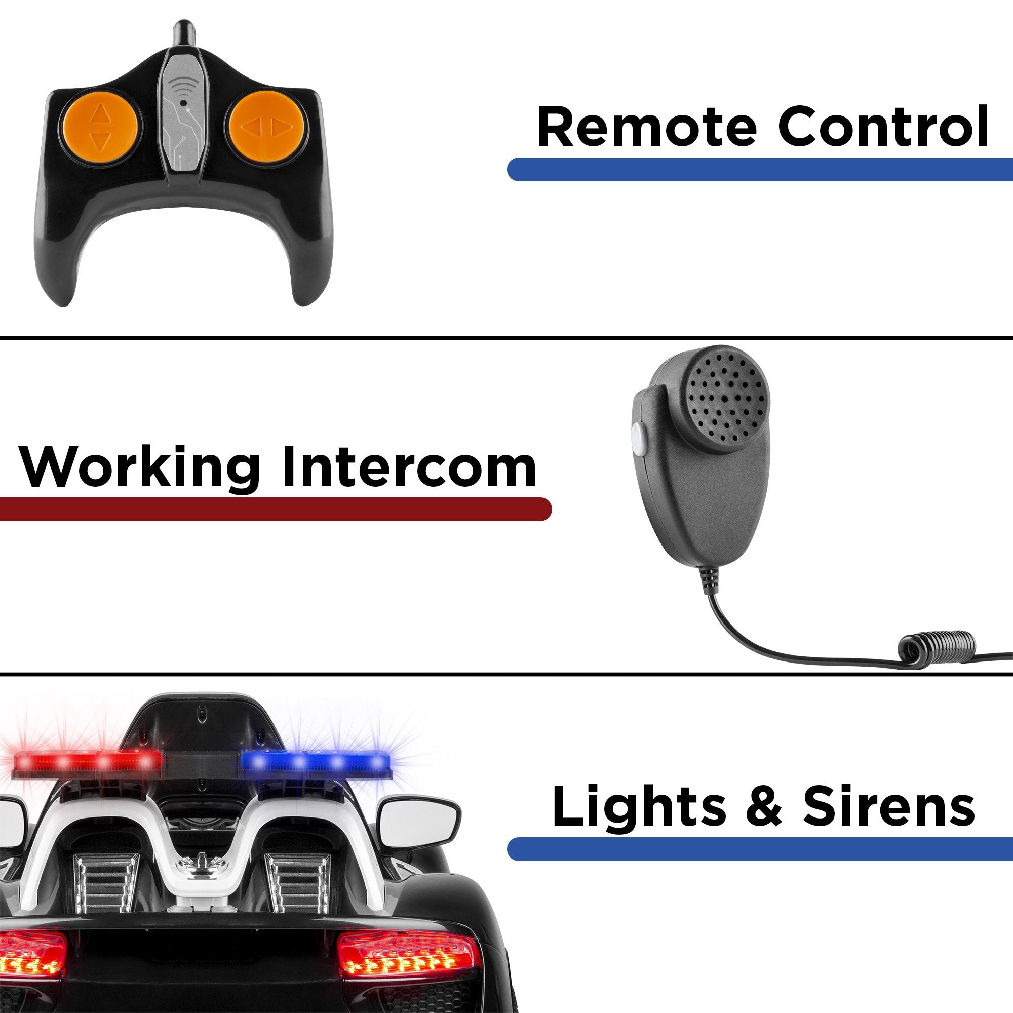 12V Kids Police Sports Car Ride-On w/ AUX Port, Parent Control, Sounds