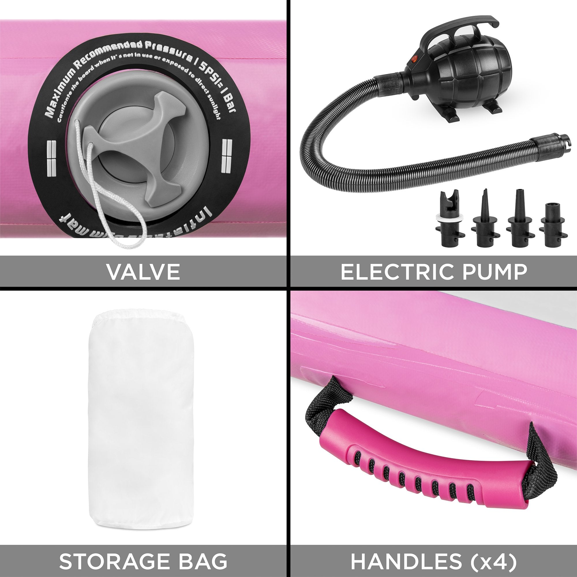• HIGH-PERFORMANCE DESIGN: Thick, durable PVC tarpaulin outer skin and a drop-stitched interior contribute to an airtight, shock-absorbent inflatable gym mat for comfortable flipping and tumbling