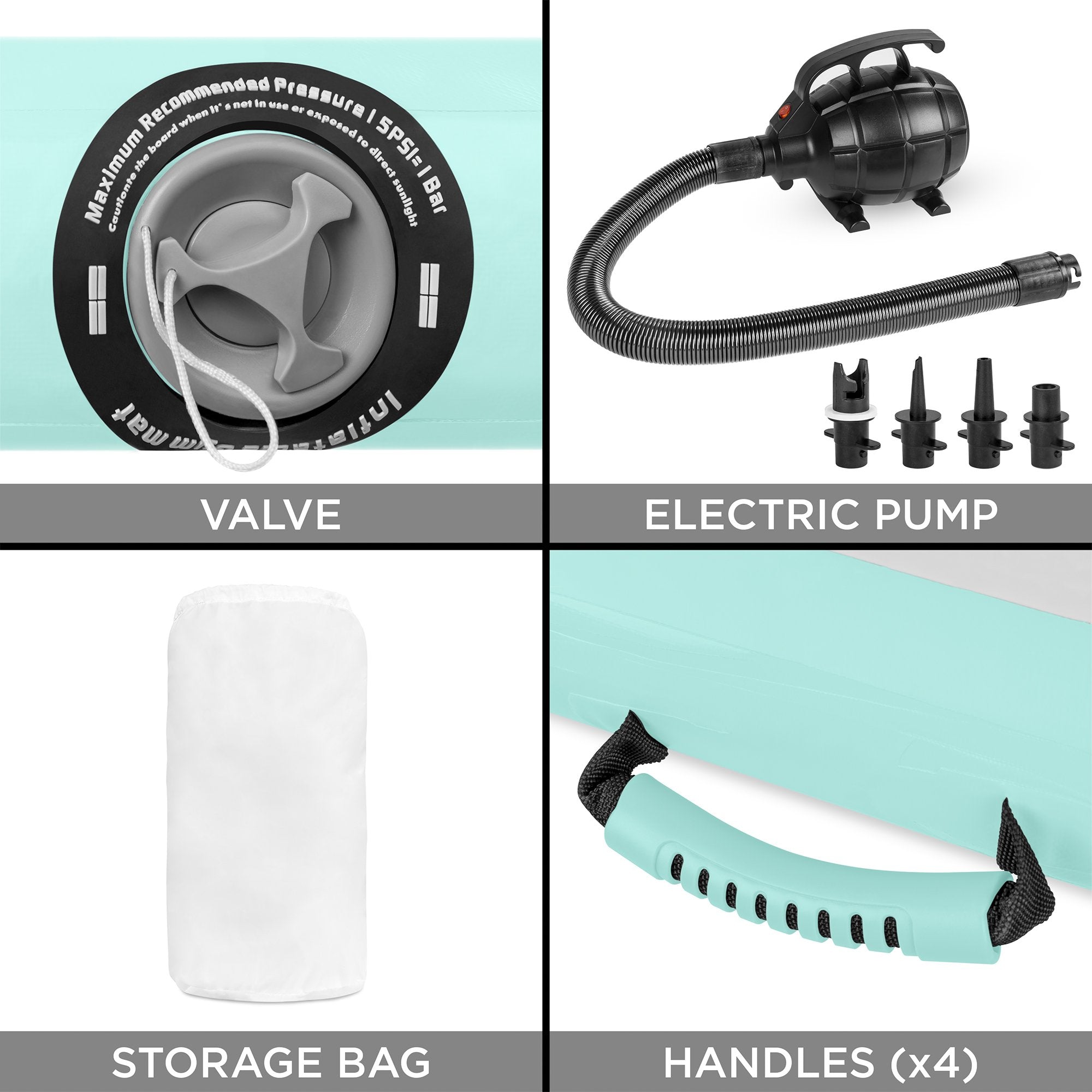 • FAST INFLATION/DEFLATION: With an electric pump included, this gym mat inflates and deflates in no time. Fill it up to exercise or take the air out for easy storage in as little as 1 minute!
