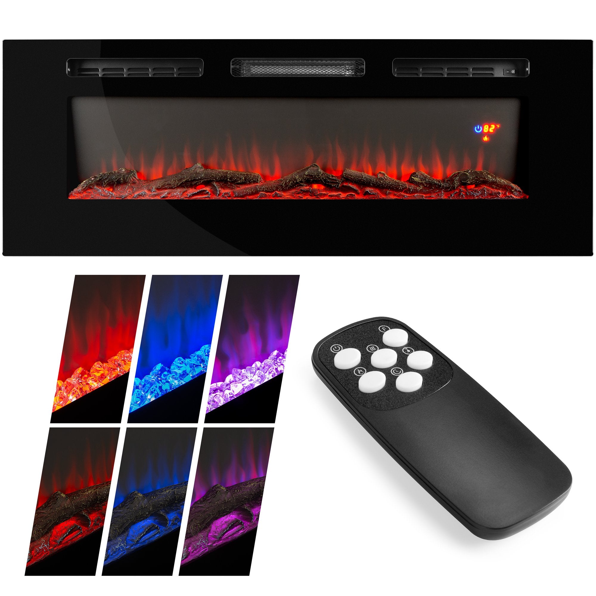 1500W Electric Fireplace Recessed and Wall Mounted w/ Remote, Logs, Crystals