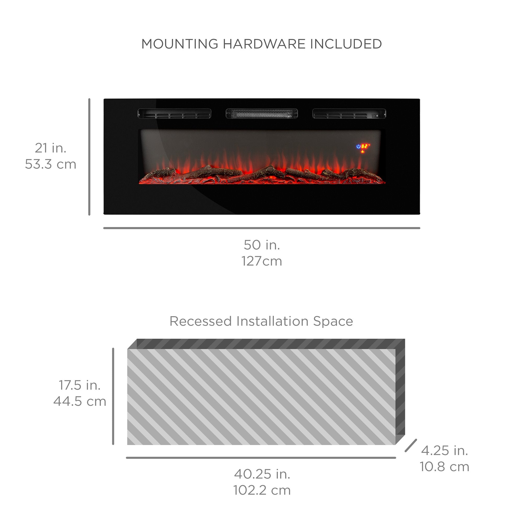 IN-WALL OR MOUNTED INSTALLATION: With hardware and easy-to-follow instructions included, you can customize your setup by hanging the fireplace on the wall or performing an in-wall recessed installation