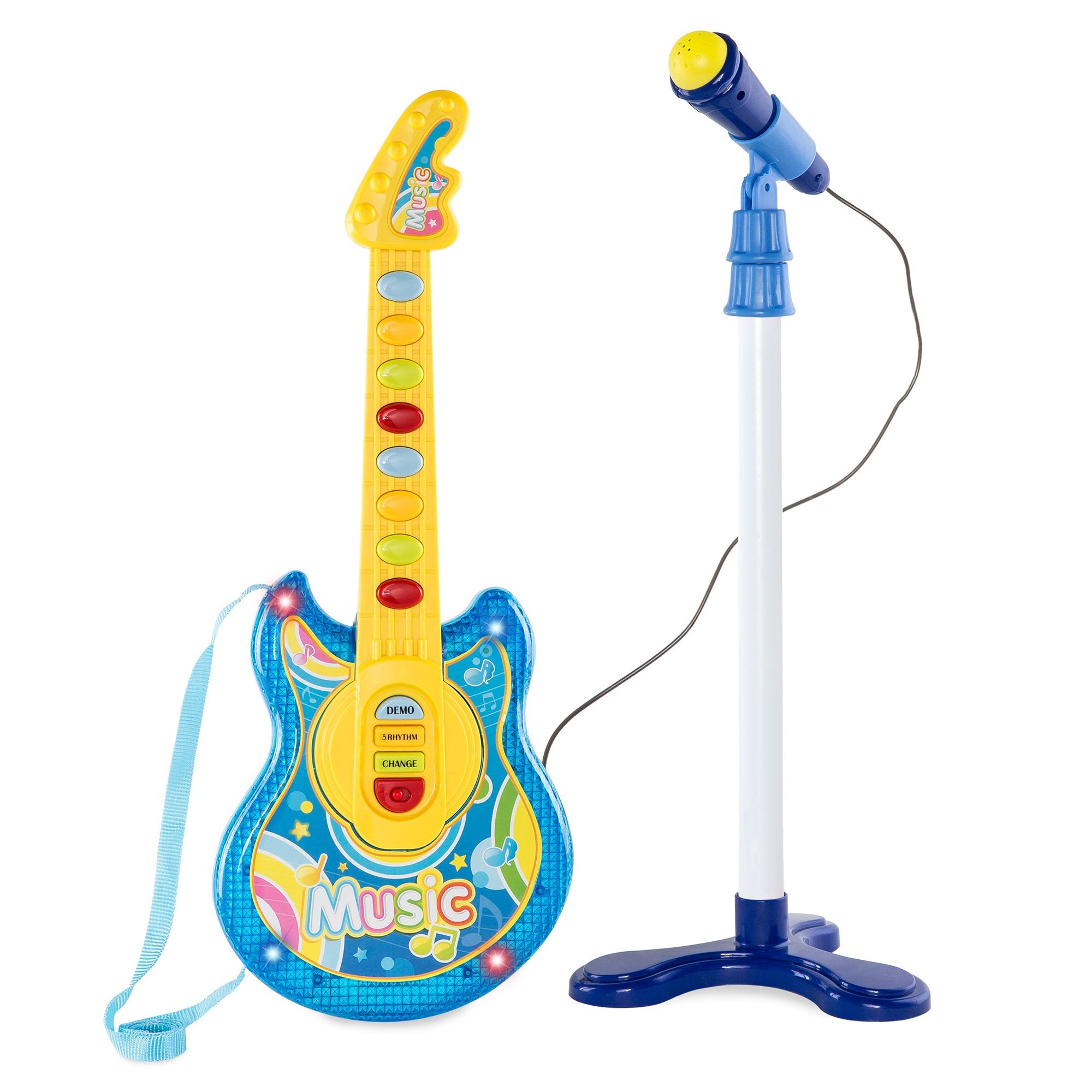 ALL-INCLUSIVE GUITAR SET: Kids electric guitar set comes complete with an easy-to-operate guitar, functioning microphone, and adjustable mic stand to let them keep jammin' as they grow