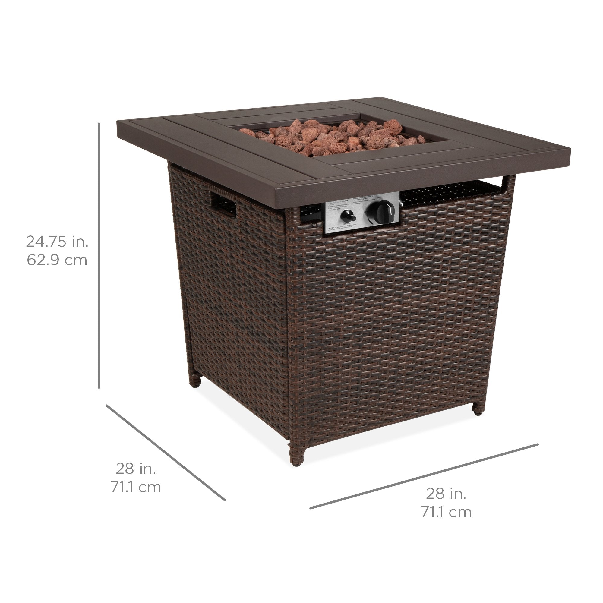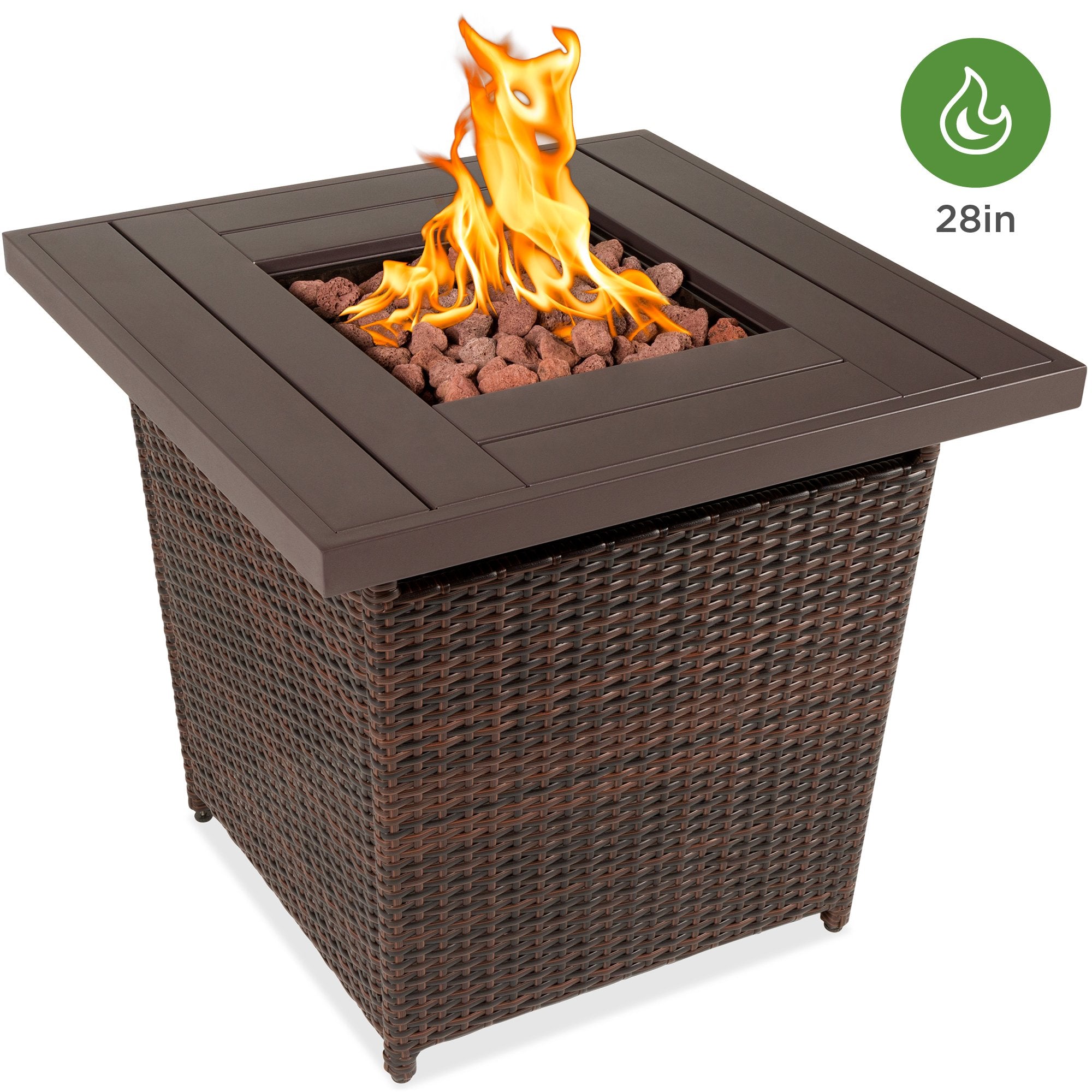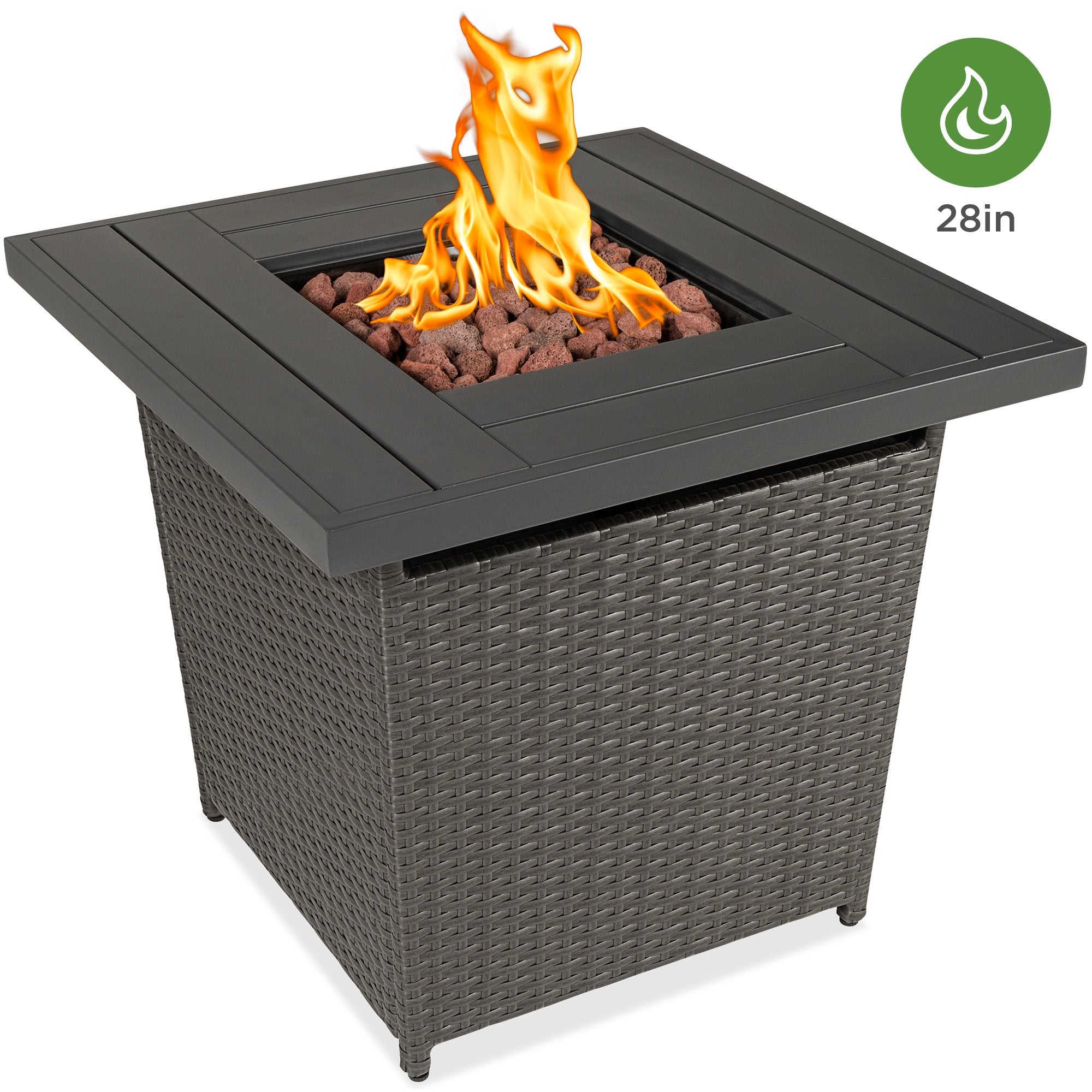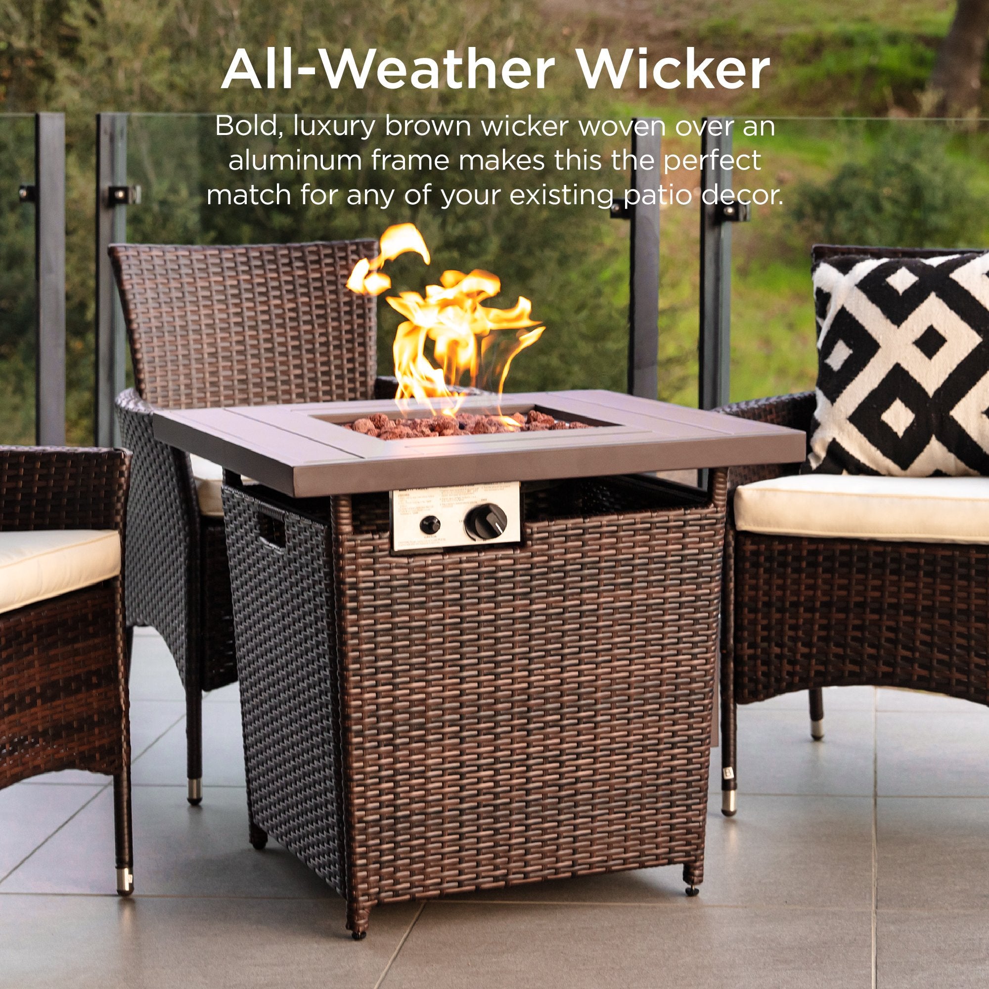 DURABLE WICKER, WITH INCLUDED COVER: High-quality, weather-resistant wicker is woven over a sturdy, aluminum frame, with a durable fabric cover to ensure this fire pit table will withstand the elements