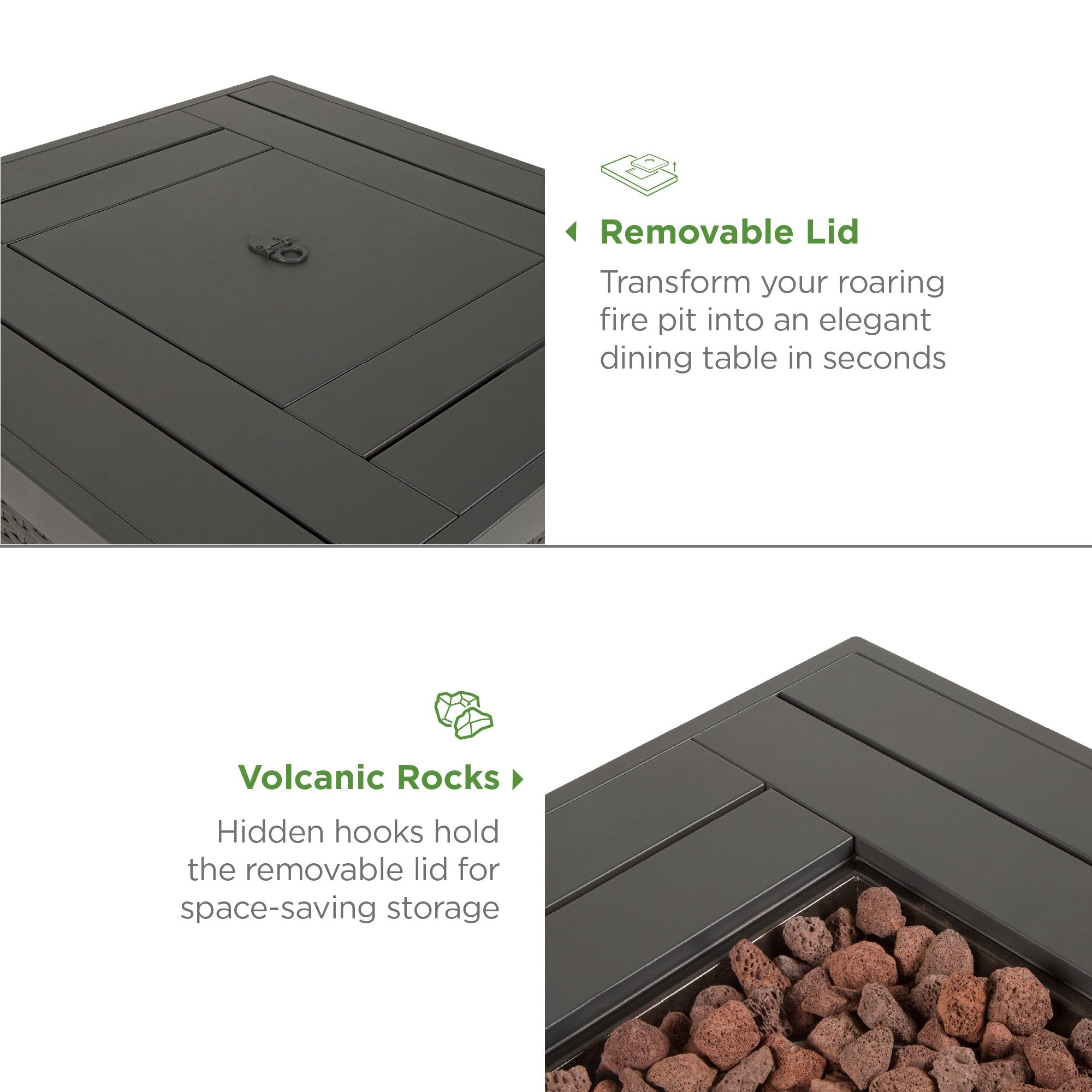 ENJOY MORE TABLESPACE: Take the lid off the built-in side hooks and cover the pit to add more space for family and friends to enjoy a light meal