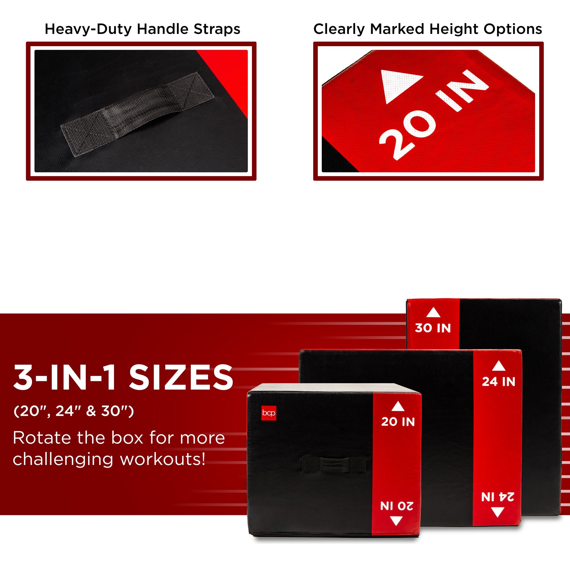 3-IN-1 DESIGN: Three clearly printed heights on the cover make it easy to select your desired height: 20-inches, 24-inches, and 30-inches. Challenge your inner athlete by using the different heights in your strength and cardio exercises!