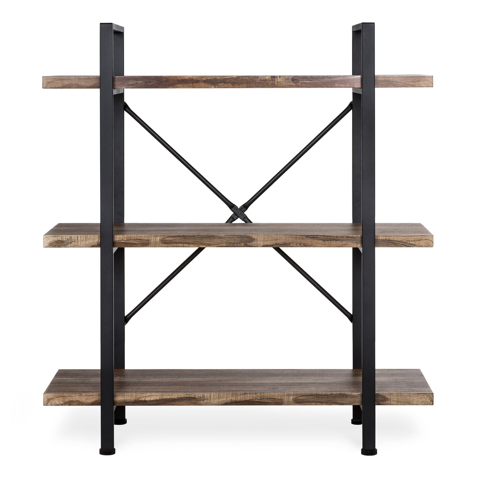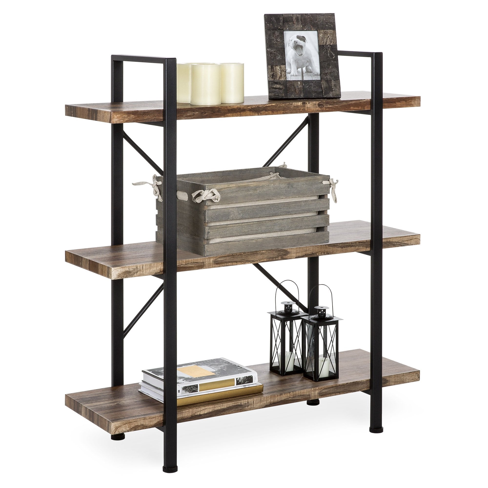 3-Shelf Industrial Open Bookshelf Furniture w/ Wood Shelves, Metal Frame