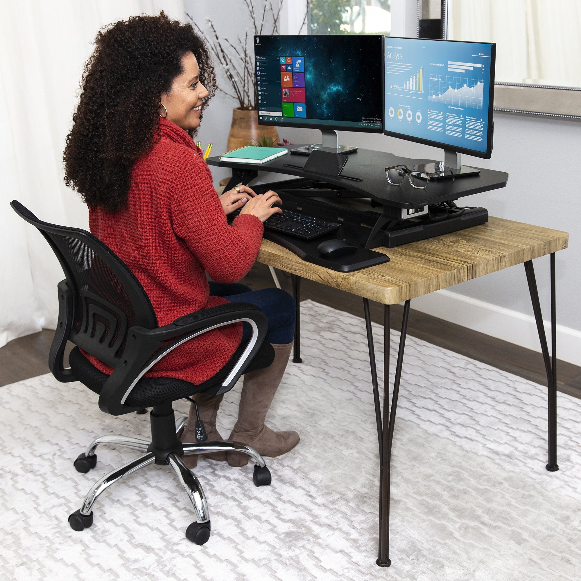 ERGONOMIC SIT-TO-STAND DESK: Enjoy a healthy balance between sitting down and standing up to improve posture, keep your mind alert, and create a more productive workspace