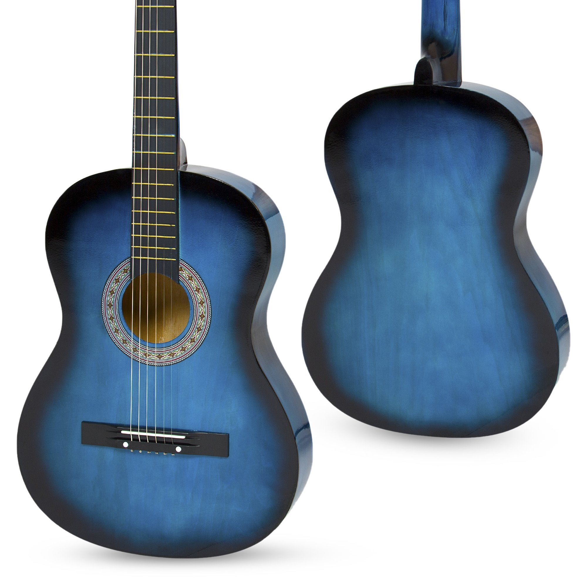 38-INCH ACOUSTIC GUITAR: Right-handed guitar delivers a full-bodied sound with its all-wood design, 19 frets, steel strings, and an attractive finish