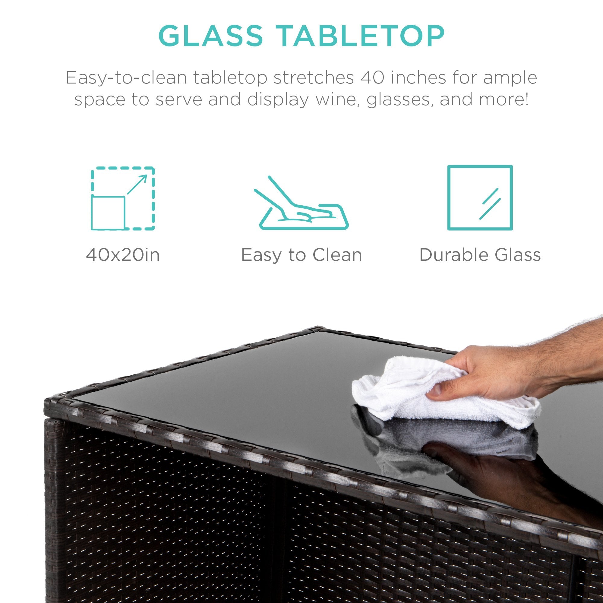 WEATHER-RESISTANT WICKER: Made of strong, all-weather wicker material, this outdoor bar set withstands weather conditions all year long