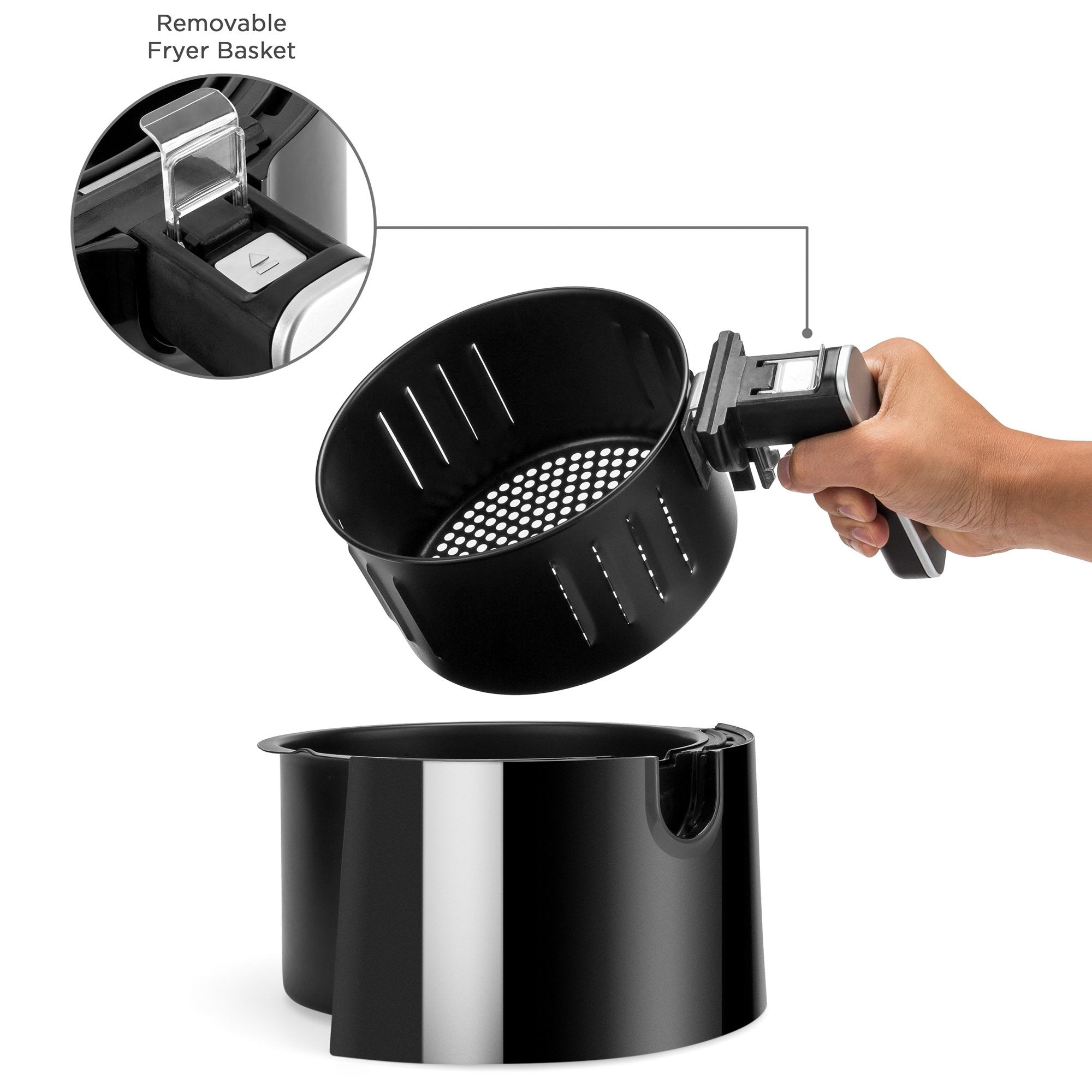 • CONVENIENT, HIGH-QUALITY FRYING: Includes a detachable frying pan with a release button on its handle to remove the basket from the pan, making it easy to pause and stir food while cooking