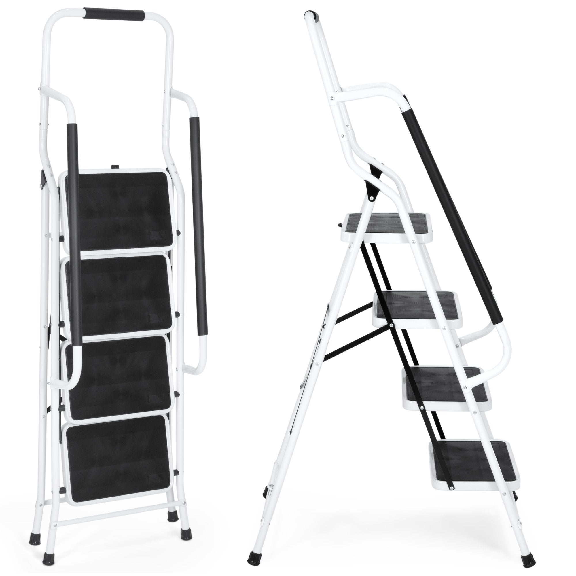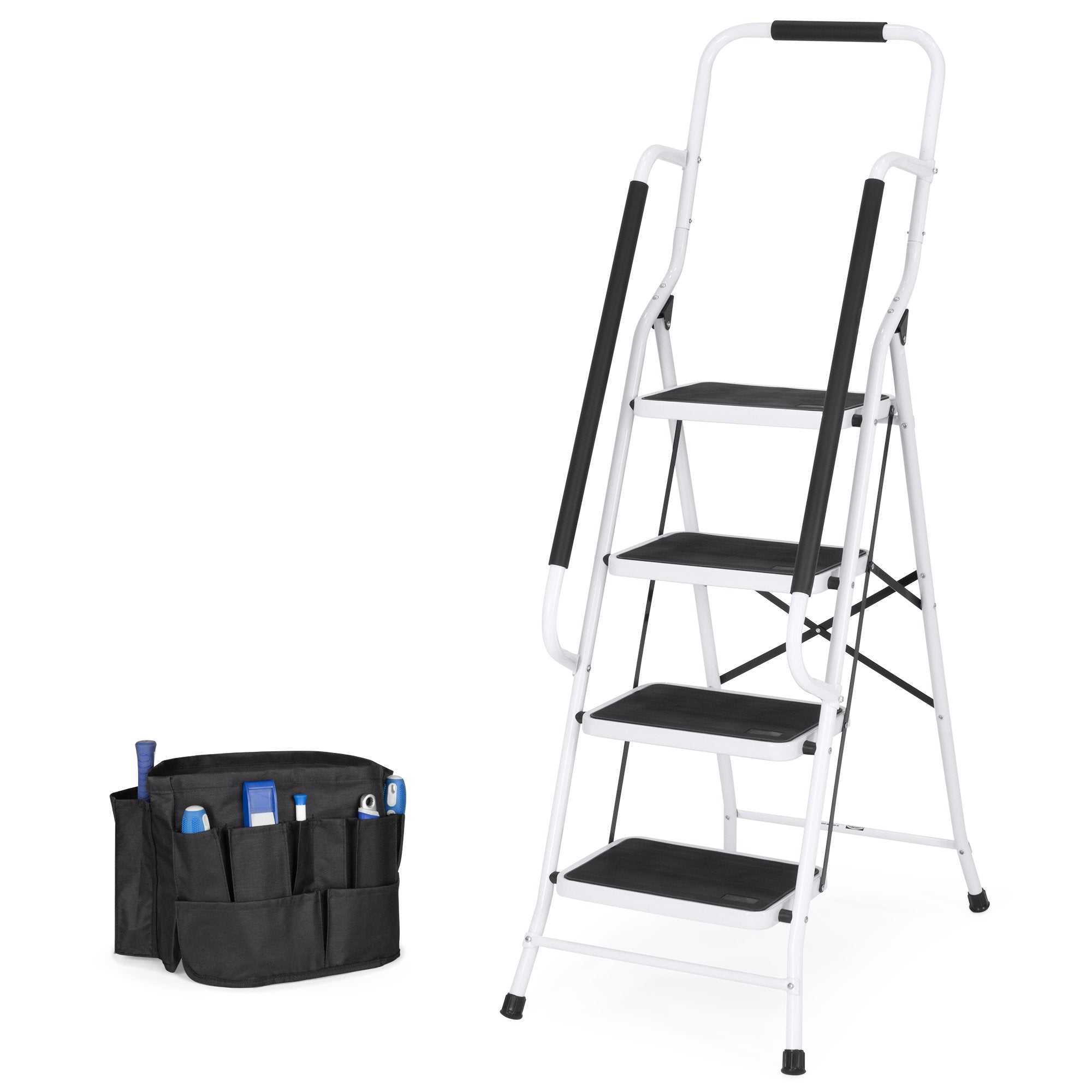 4-Step Portable Folding Ladder w/ Handrails, Tool Bag