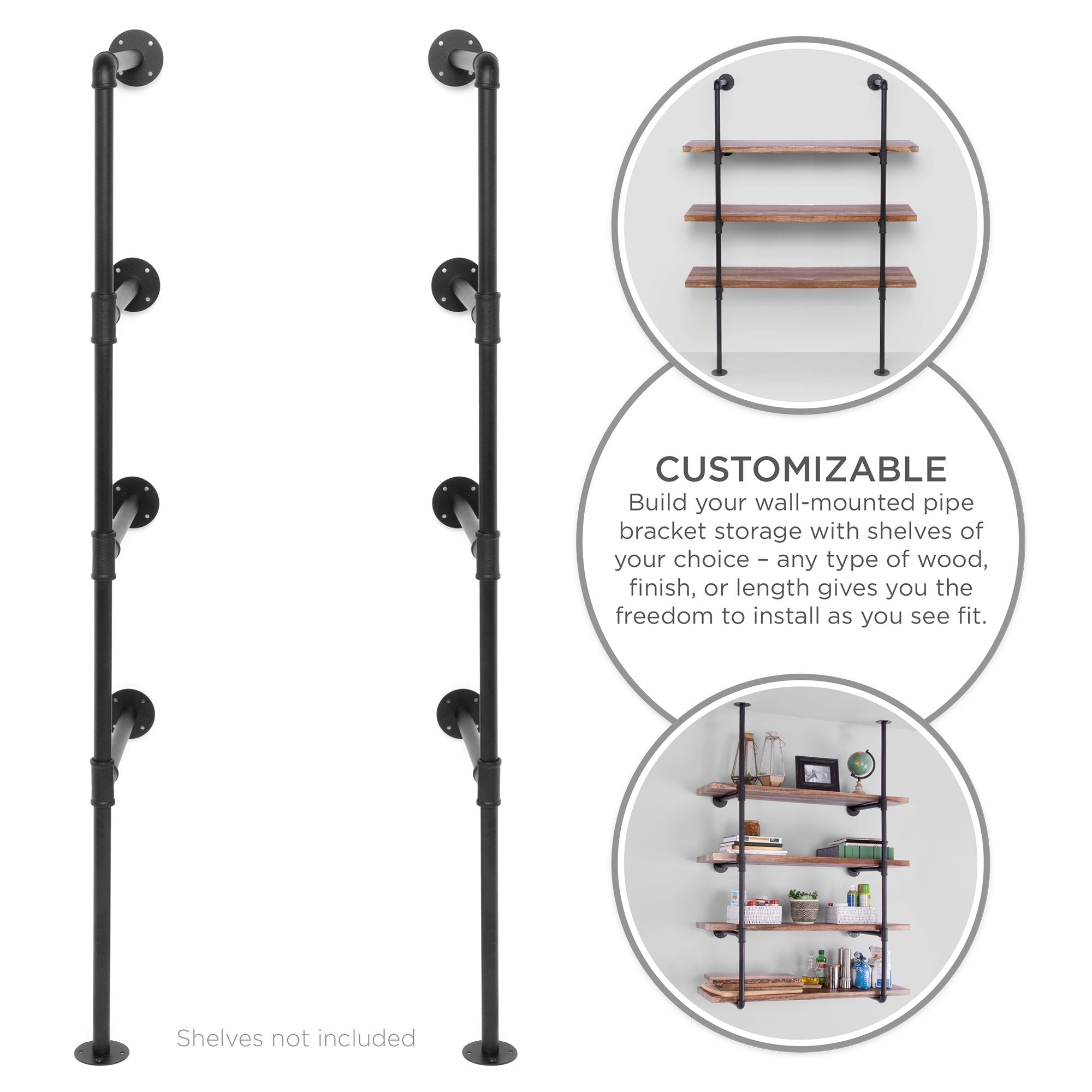 4-Tier Industrial Wall-Mounted Iron Pipe Bracket DIY Bookshelf Frame