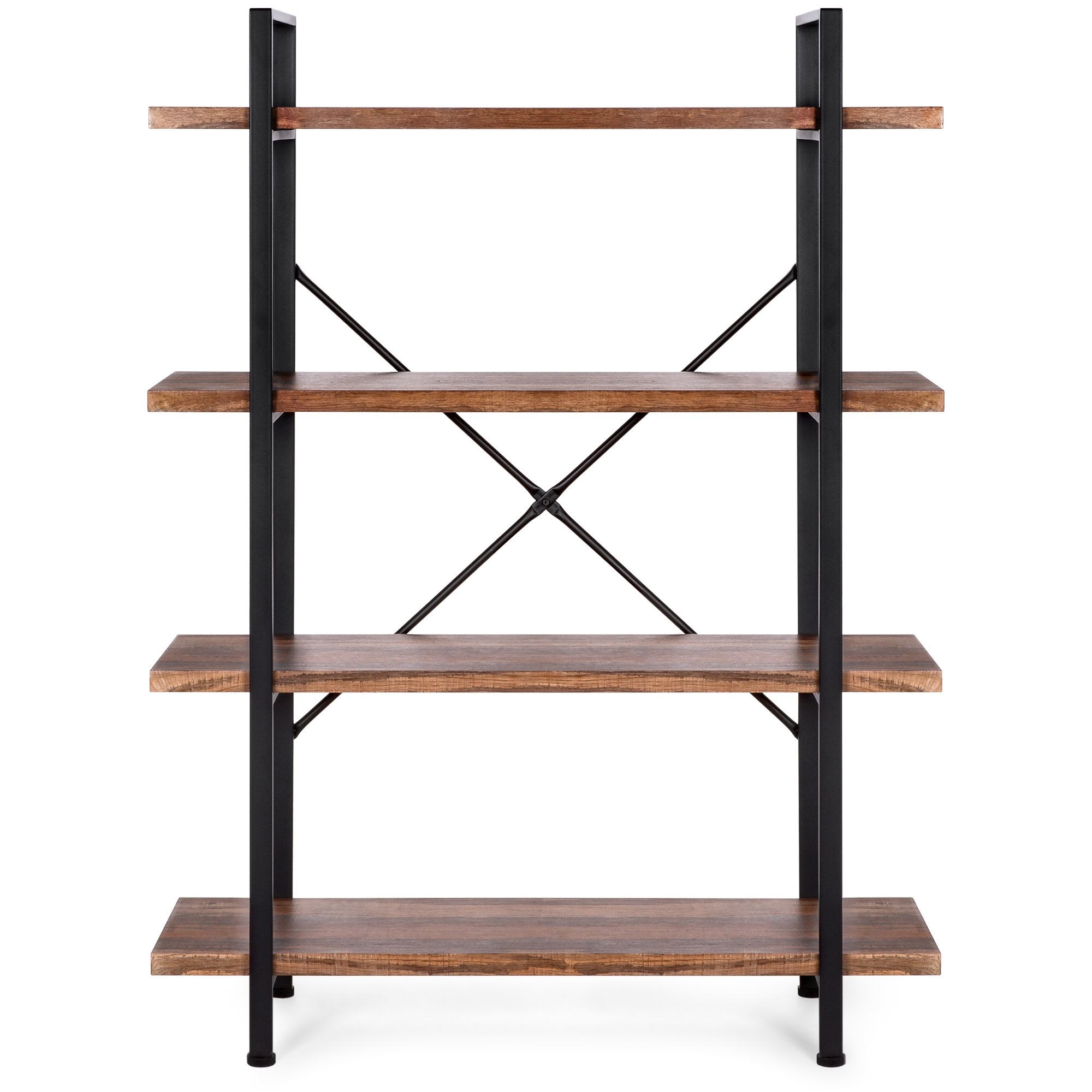 4-Shelf Industrial Open Bookshelf Furniture w/ Wood Shelves, Metal Frame