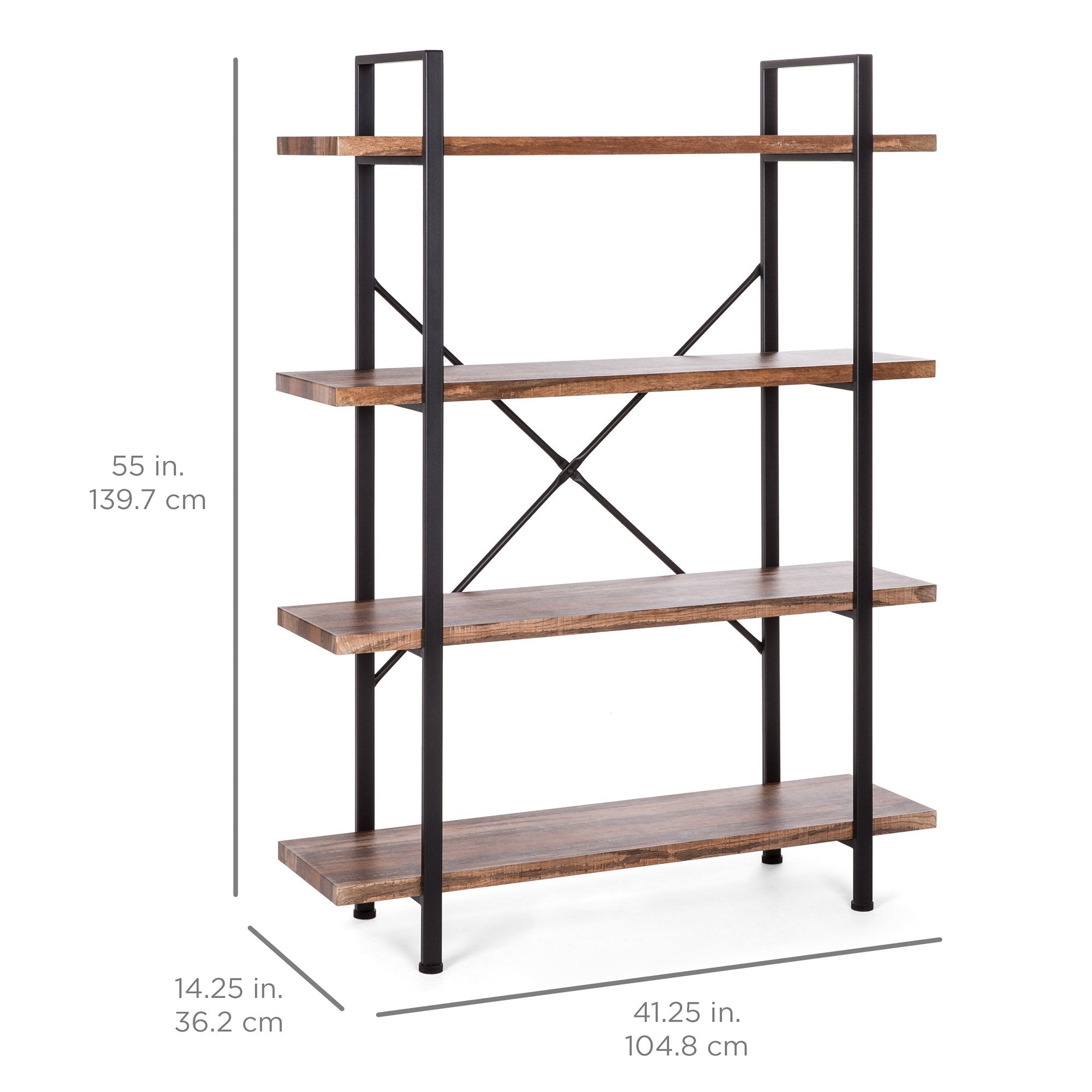 INDUSTRIAL-STYLE 4-TIER BOOKSHELF: This stylish furniture piece has clean lines and a sleek design for the perfect vintage-industrial touch to a living room, bedroom, or place of business