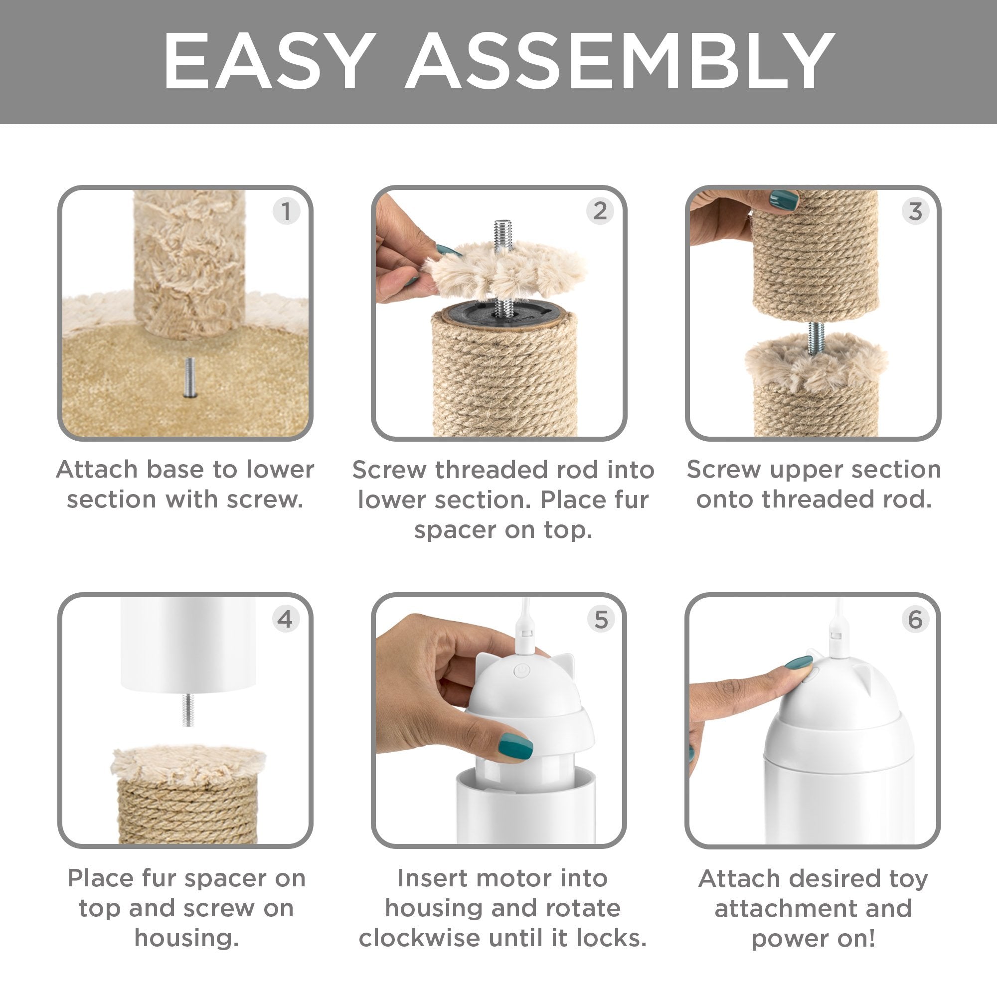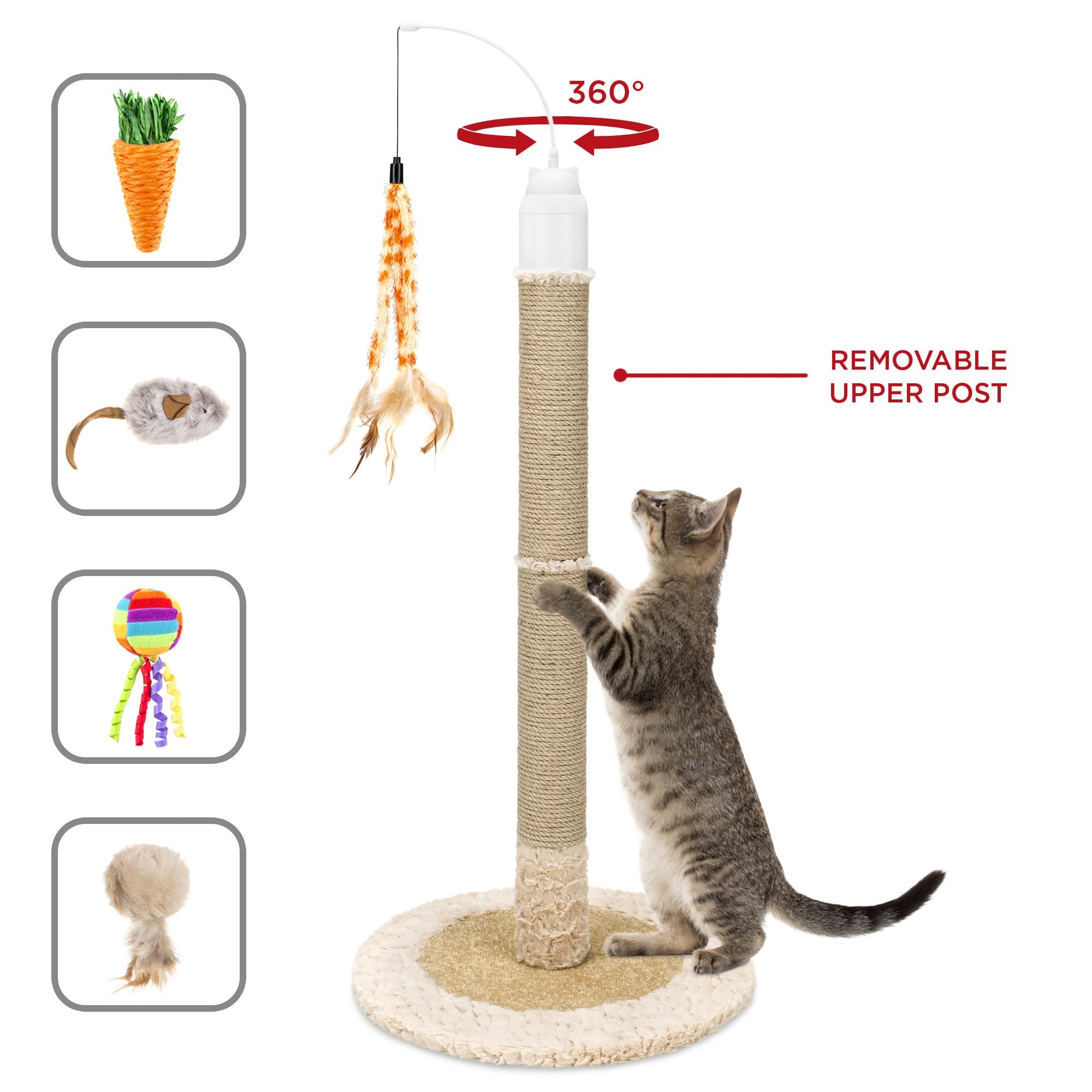 • 2-IN-1 INTERACTIVE POST: Designed for your little bundle of fur to enjoy scratching the post or playing with interactive, 360-degree rotating toys; auto shutoff function turns the rotator off after approximately 10 minutes