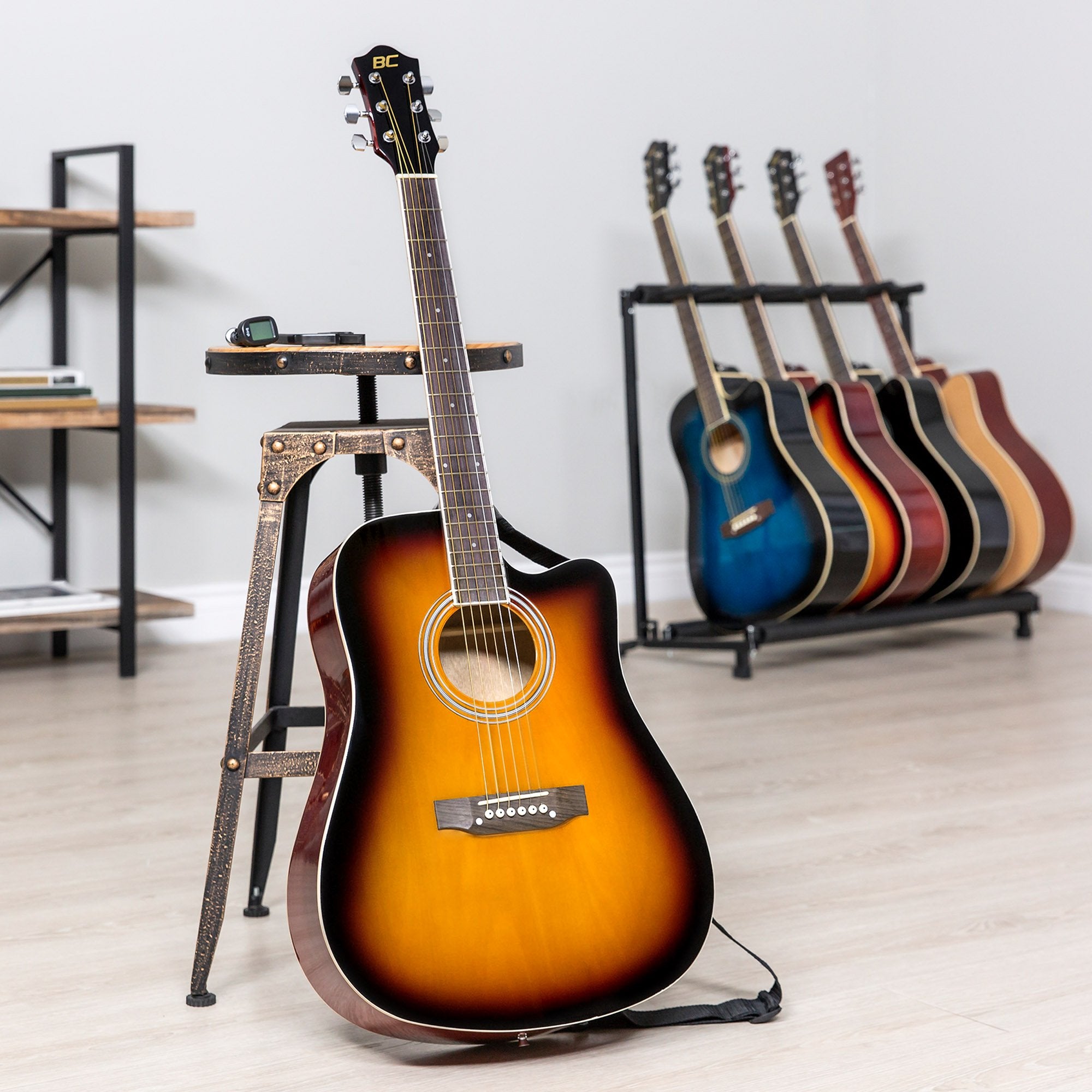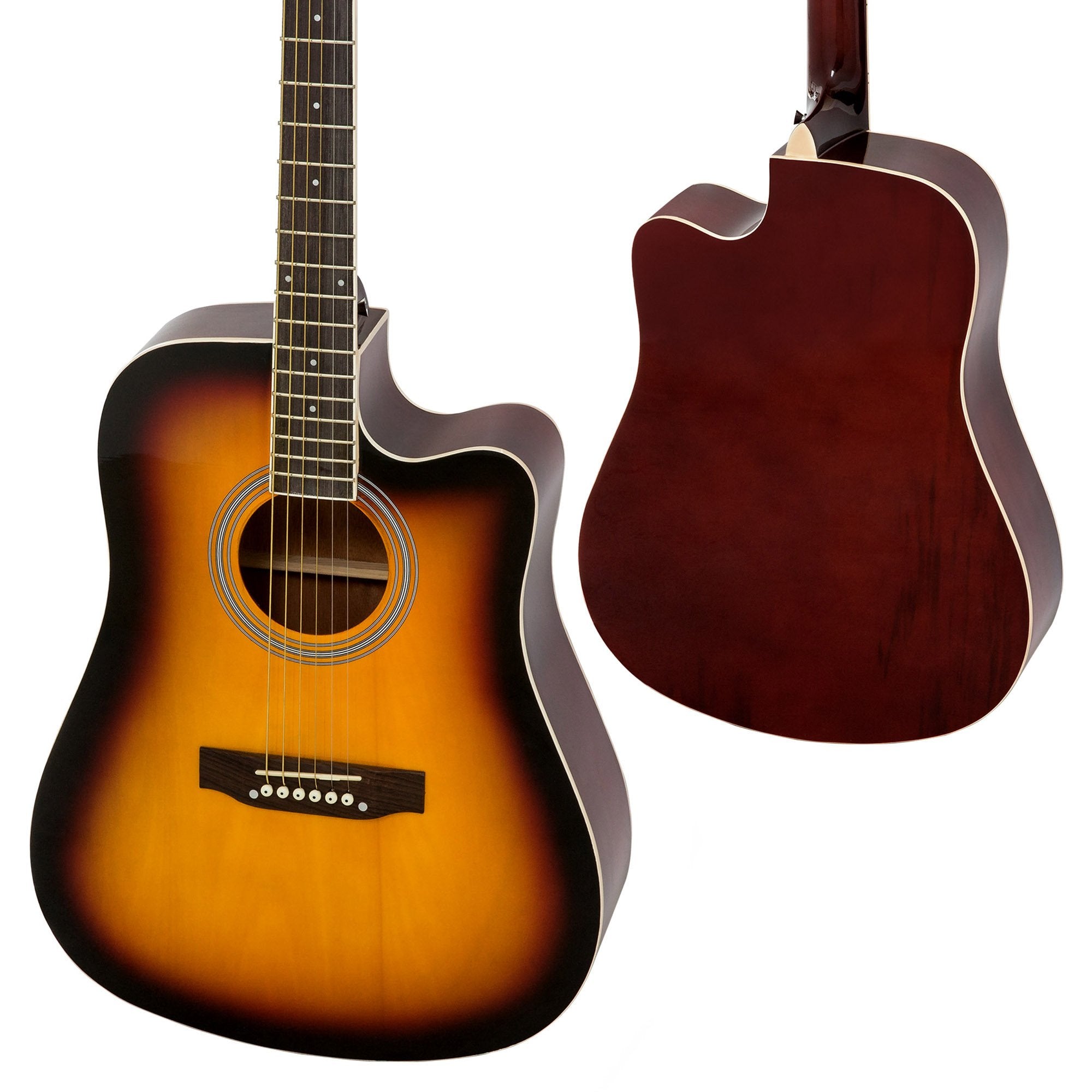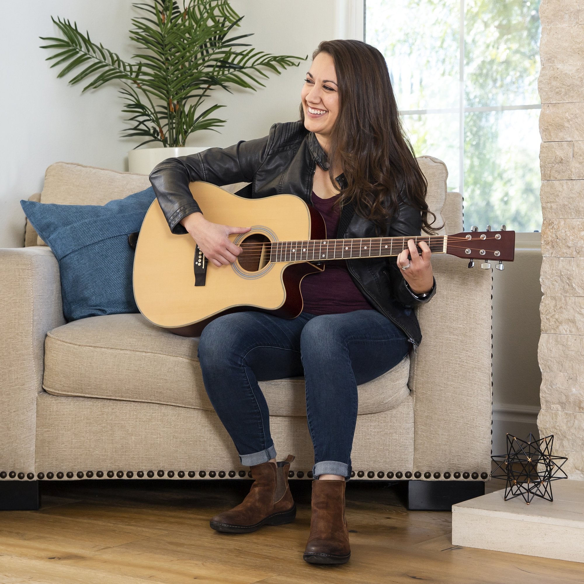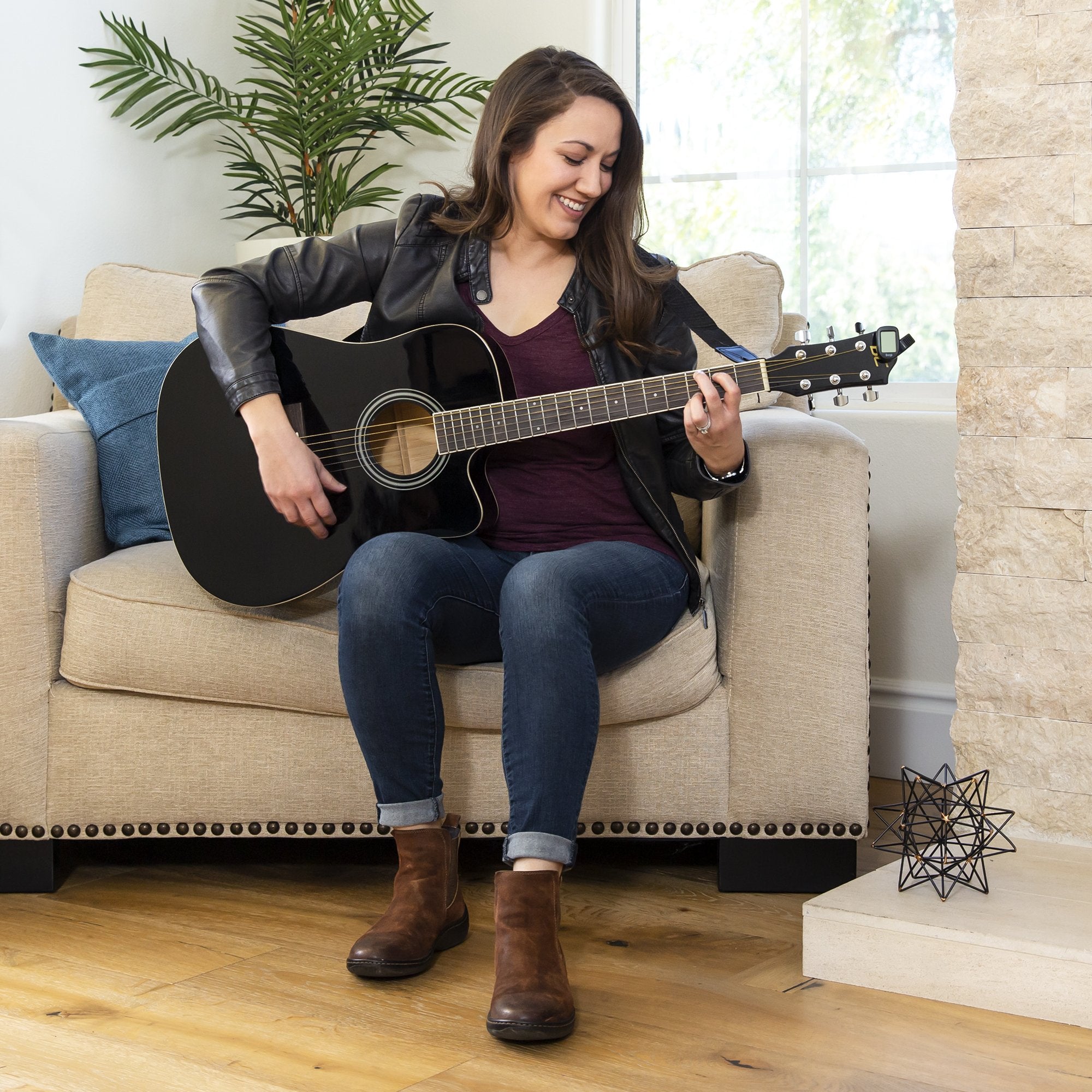 BRIGHT, RICH SOUND: Play like the pros, as this guitar's dreadnought body and cutaway design contribute to a vibrant tone suitable for all styles of music