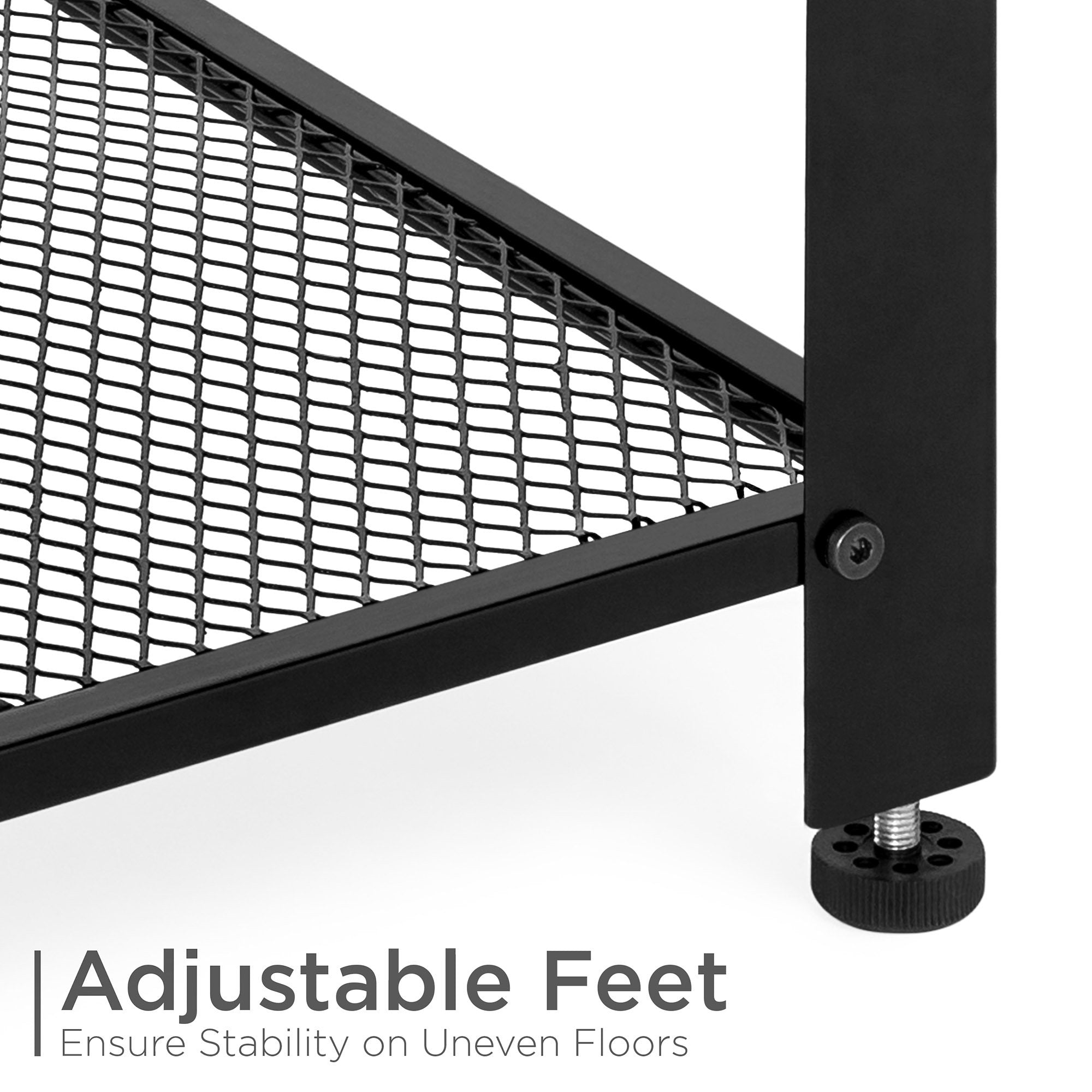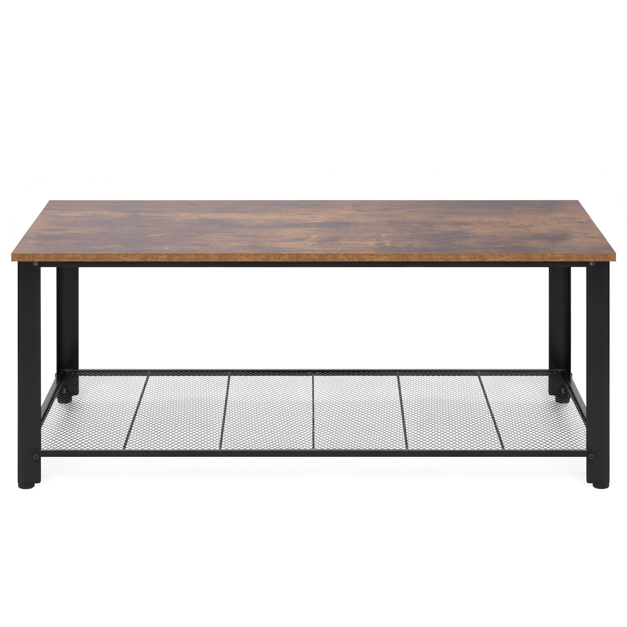 42in 2-Tier Rustic Industrial Coffee Table w/ Wood Finish Top, Metal Frame
