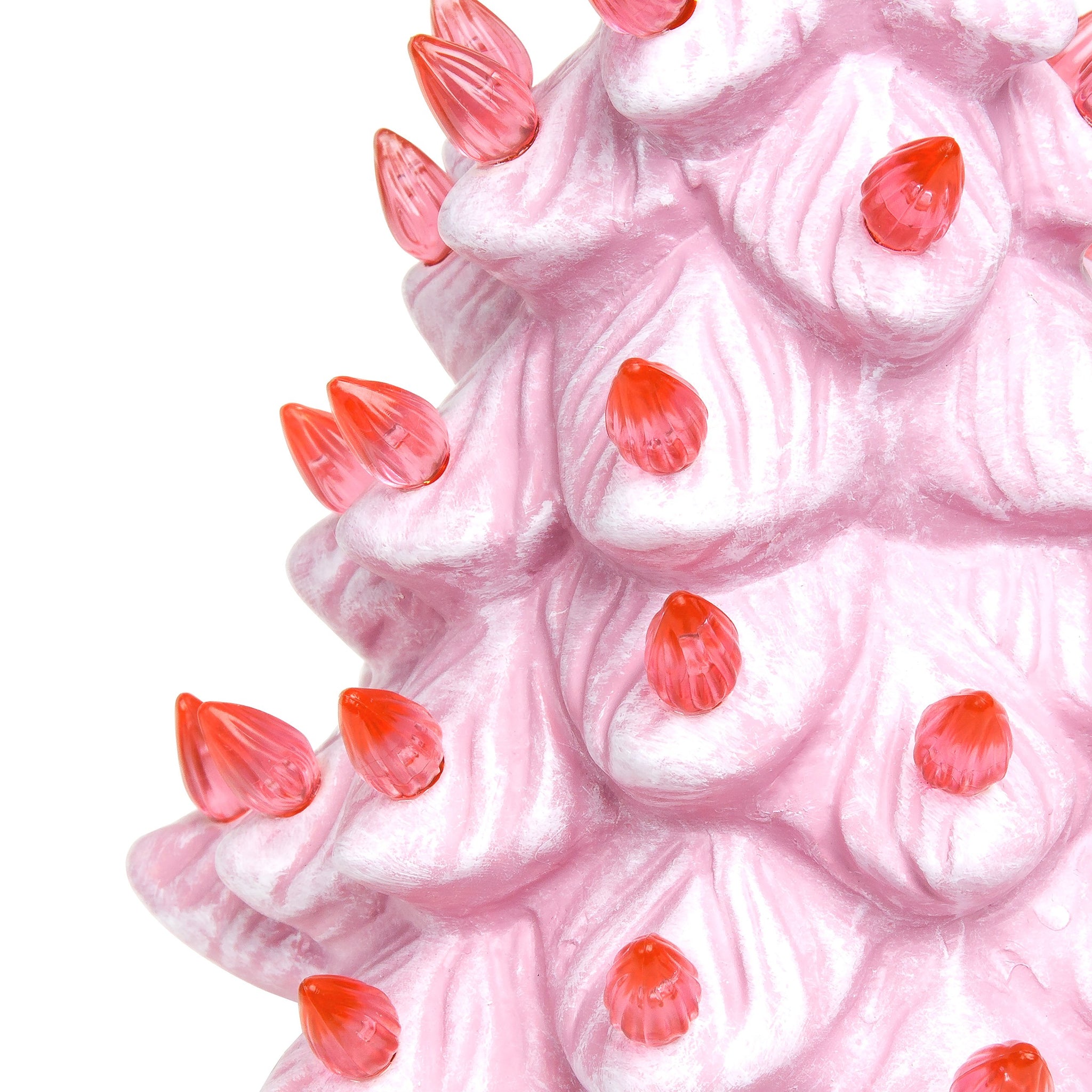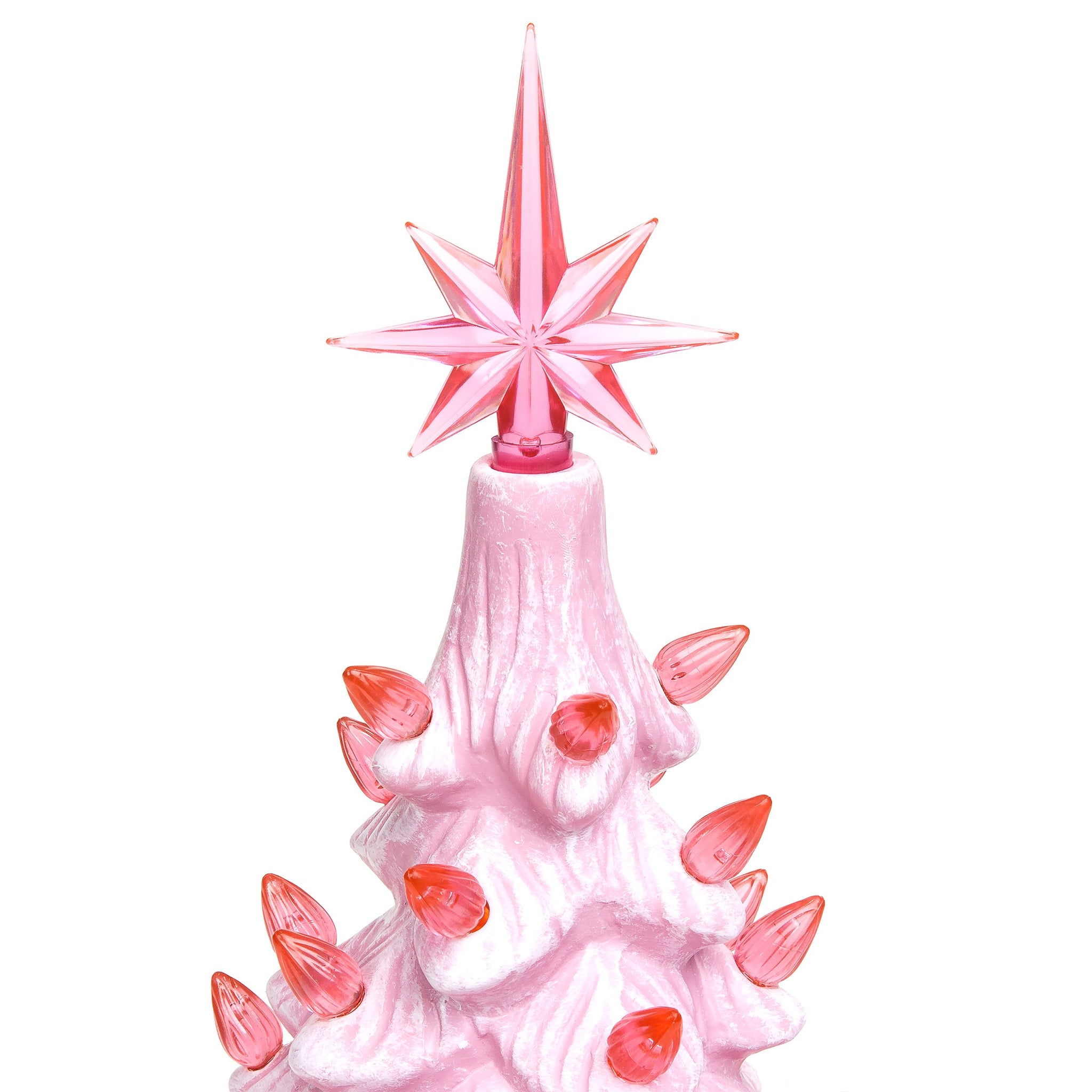 CHARMING PINK LIGHTS: Decorated with festive pink bulbs and a 7-pointed star topper to brighten up your holidays
