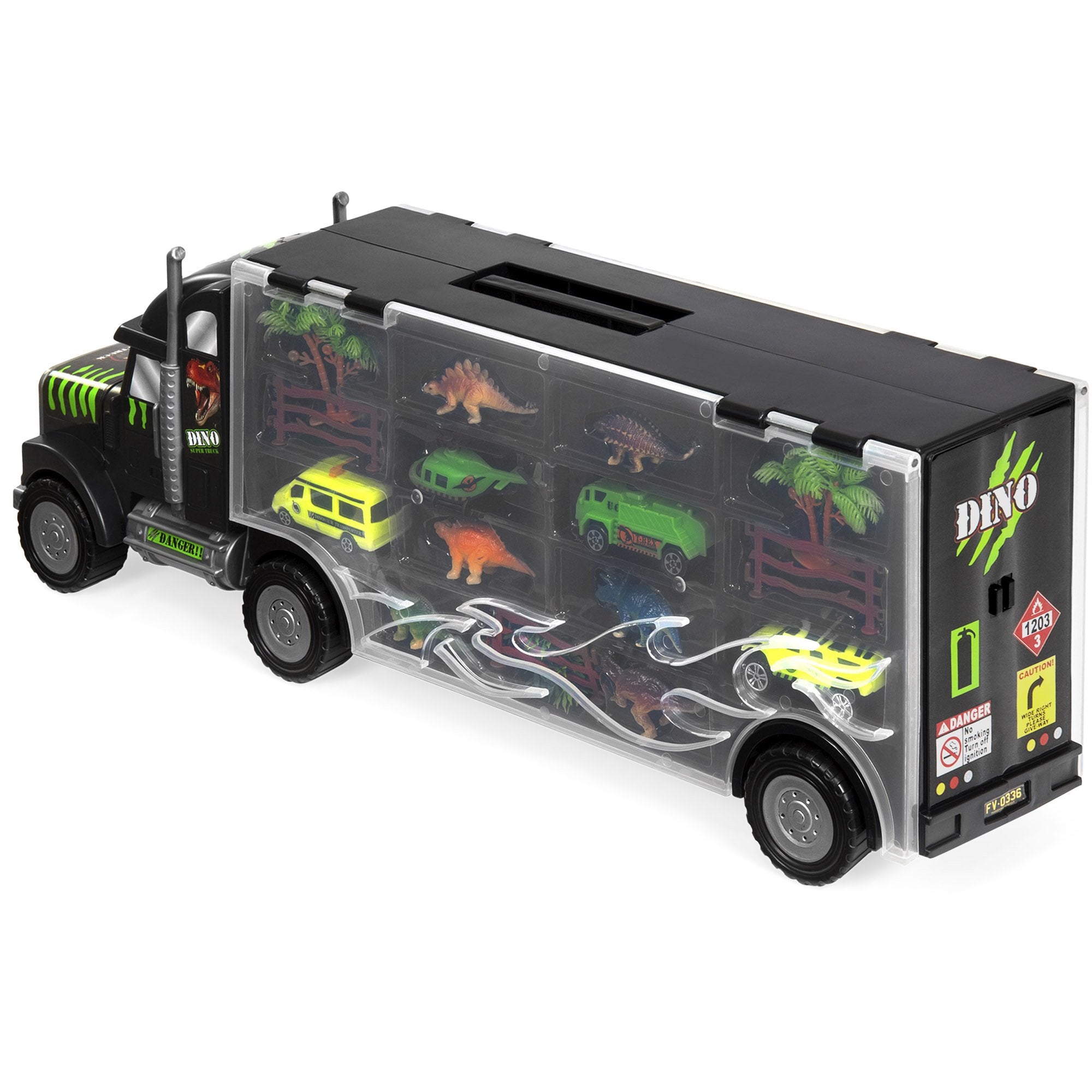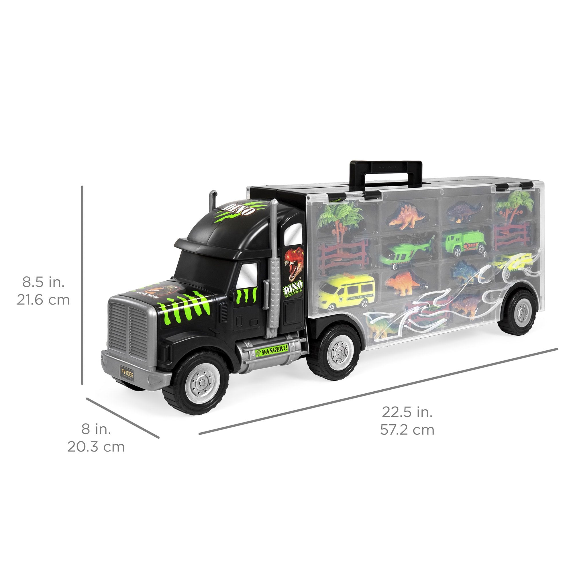 PORTABLE DESIGN: Built-in, kid-friendly carrying handle makes transporting cars and dinosaurs quick and easy for on-the-go fun