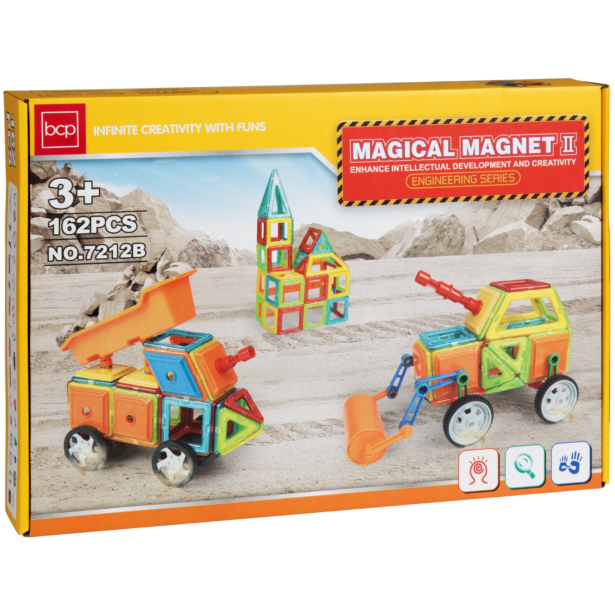 162-Piece Magnetic Toy Steamroller Dump Truck Building Set