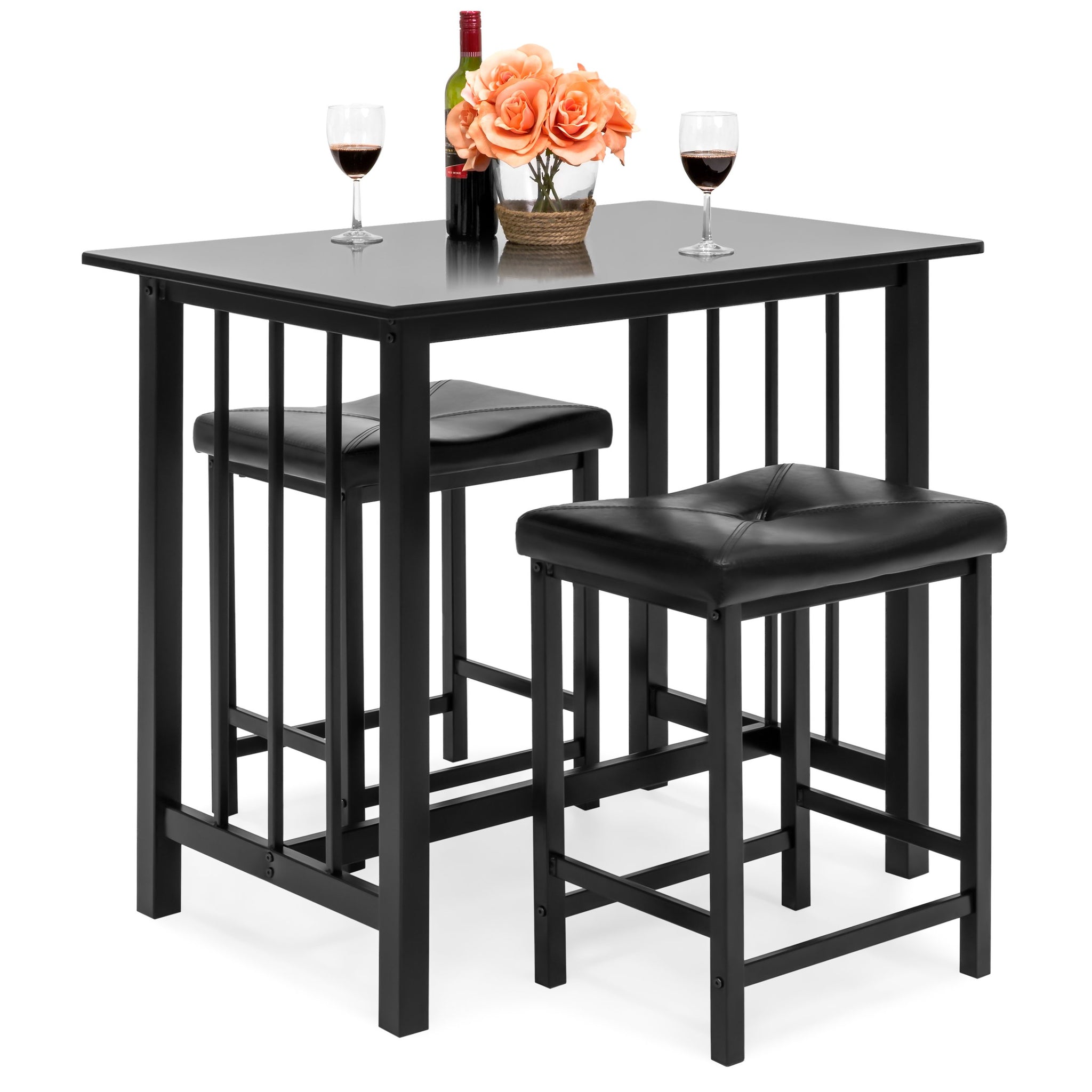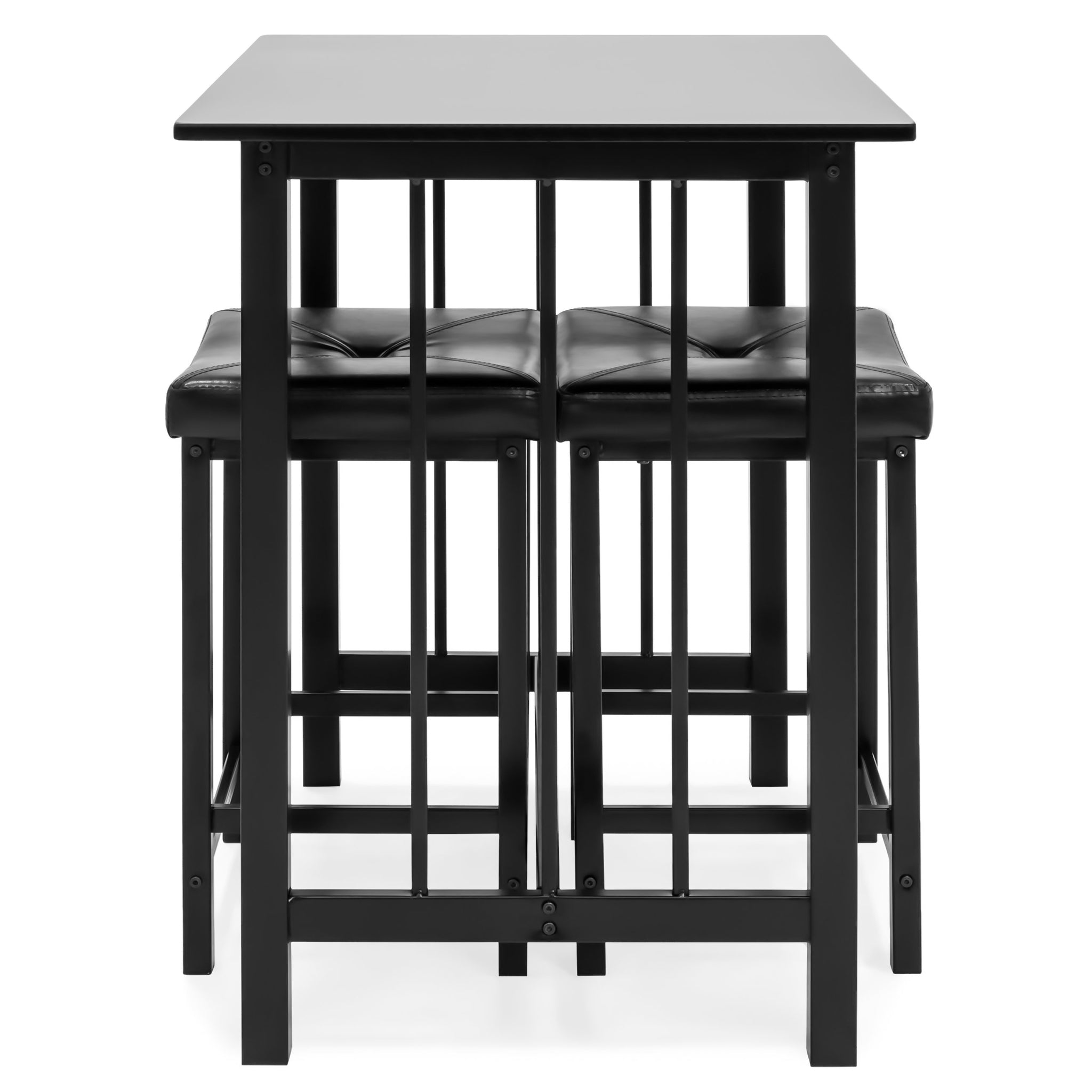 SPACE-SAVING, COUNTER-HEIGHT DESIGN: Take advantage of a compact, counter-height table with a pair of cushioned stools that can be neatly stored underneath for space-saving convenience
